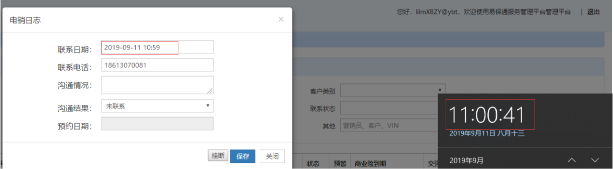 【电销管理】电销客户管理编辑界面,电话外呼时联系日期与当前时间不符