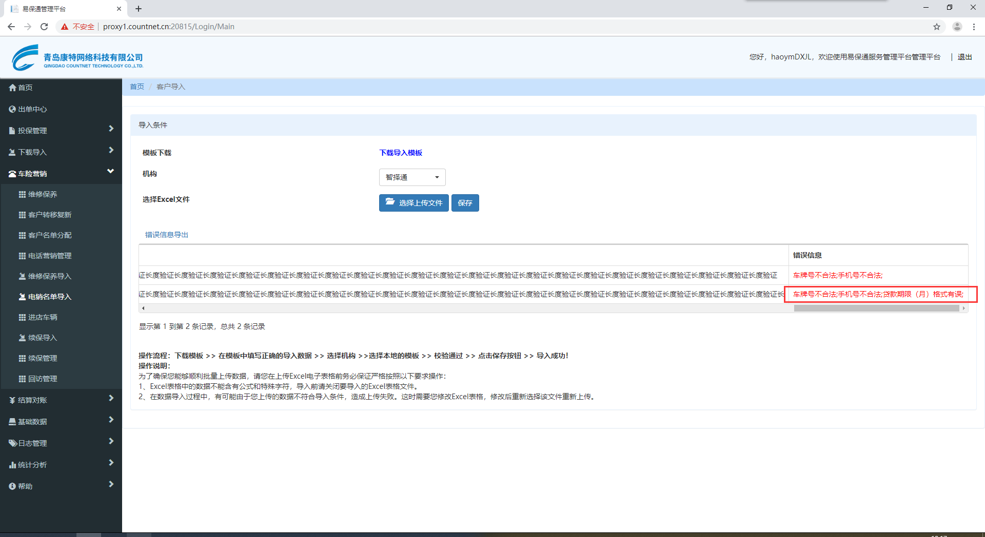 【电销管理】电销名单导入,长度超过最大值没有校验