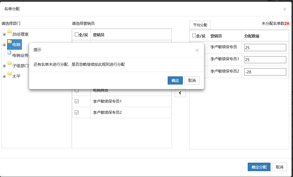 电销名单分配界面,按下键可以输入负数,导致未分配剩余数量与分配数量不符。