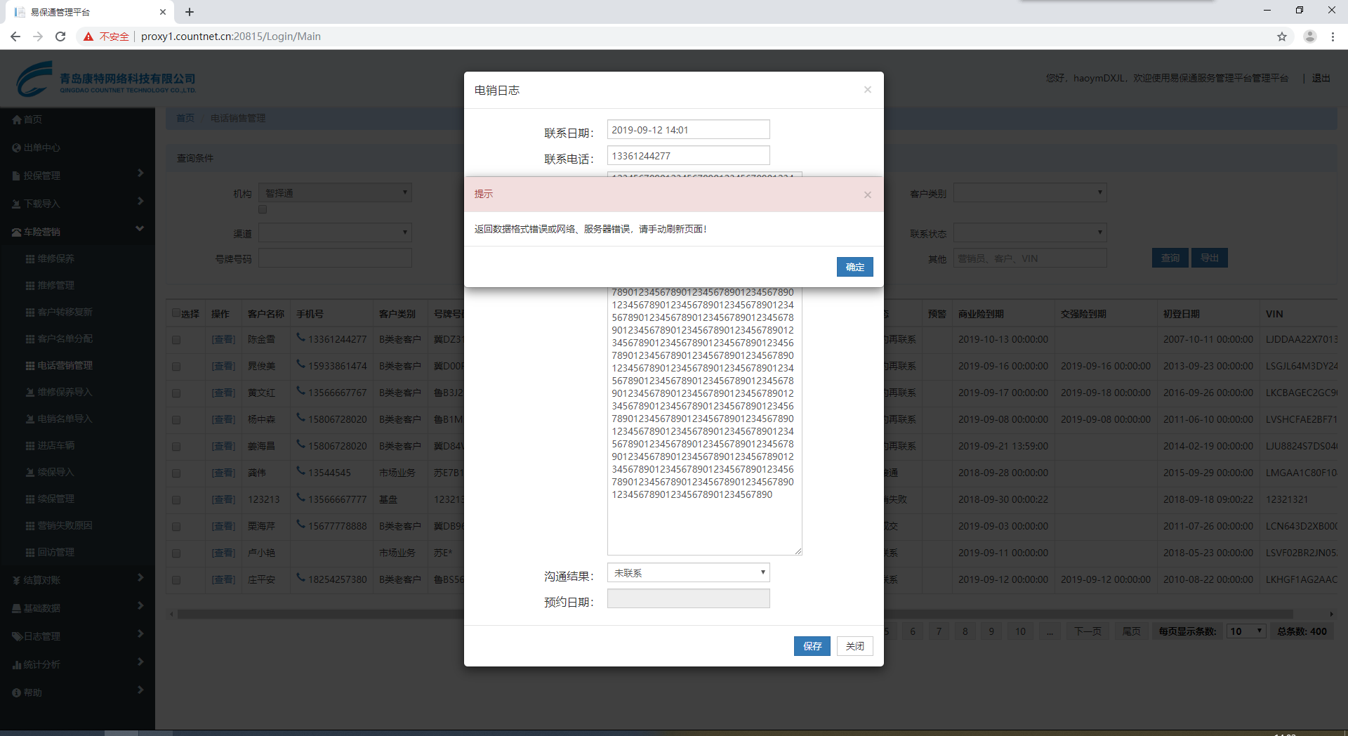 【电销管理】电话销售管理,外呼或添加联络次数,电销日志的沟通情况没有做最大输入限制,输入过多报错
