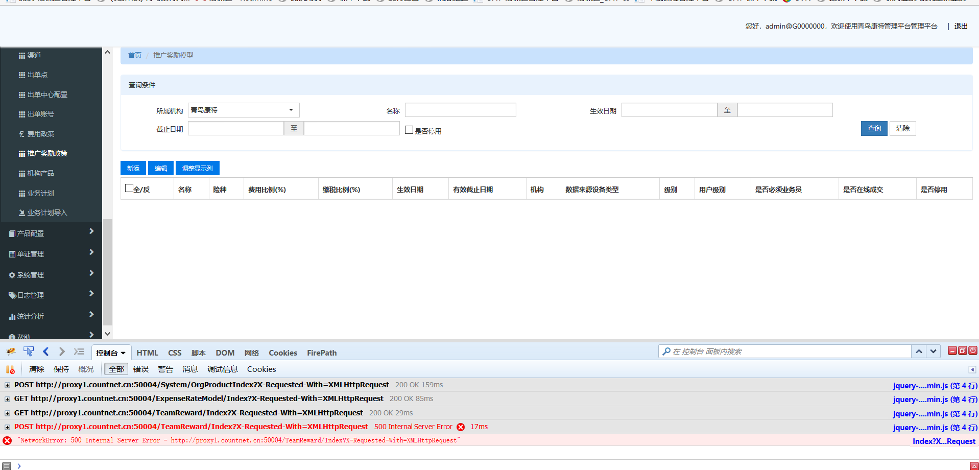【UAT】基础数据-推广奖励政策点击查询报错。