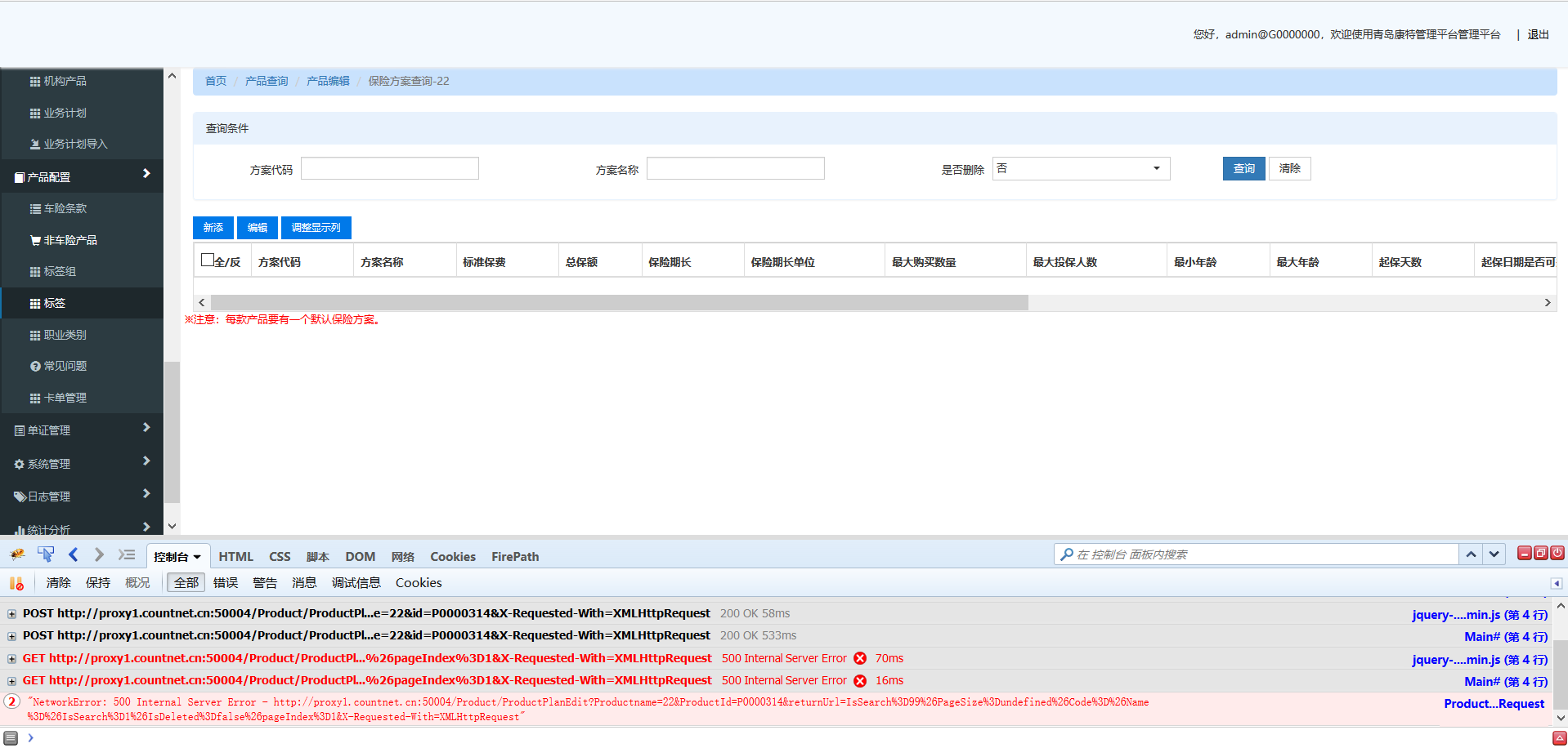 【UAT】产品配置-非车险产品-点击右下角保险方案,跳转至保险方案查询界面后点击新添报错。