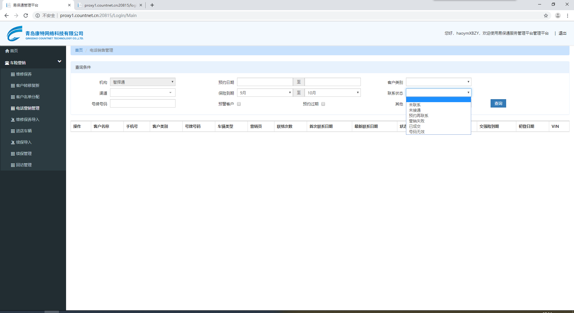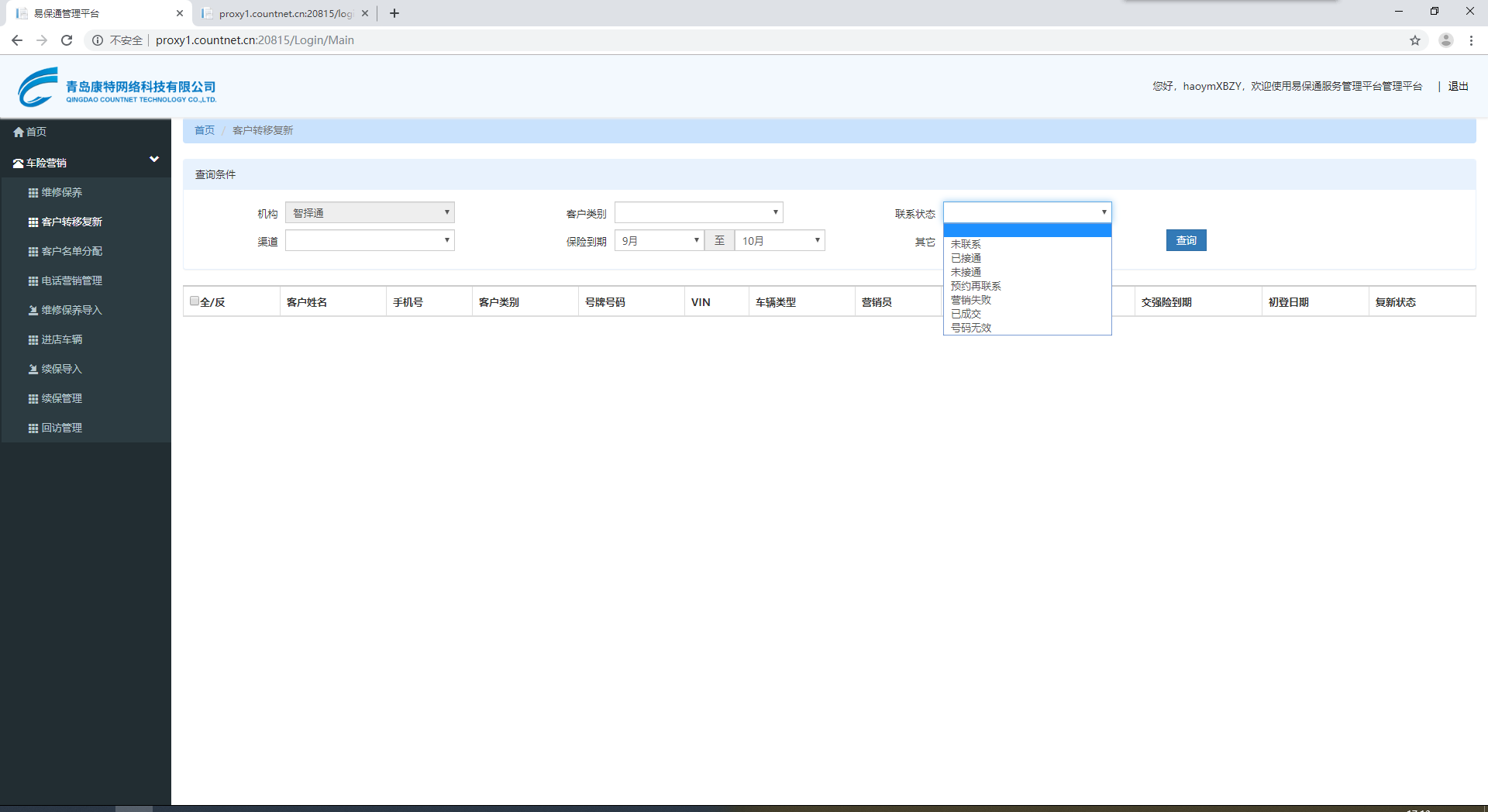 【电销管理】客户转移复新,联系状态比客户管理的联系状态多了一个已接通