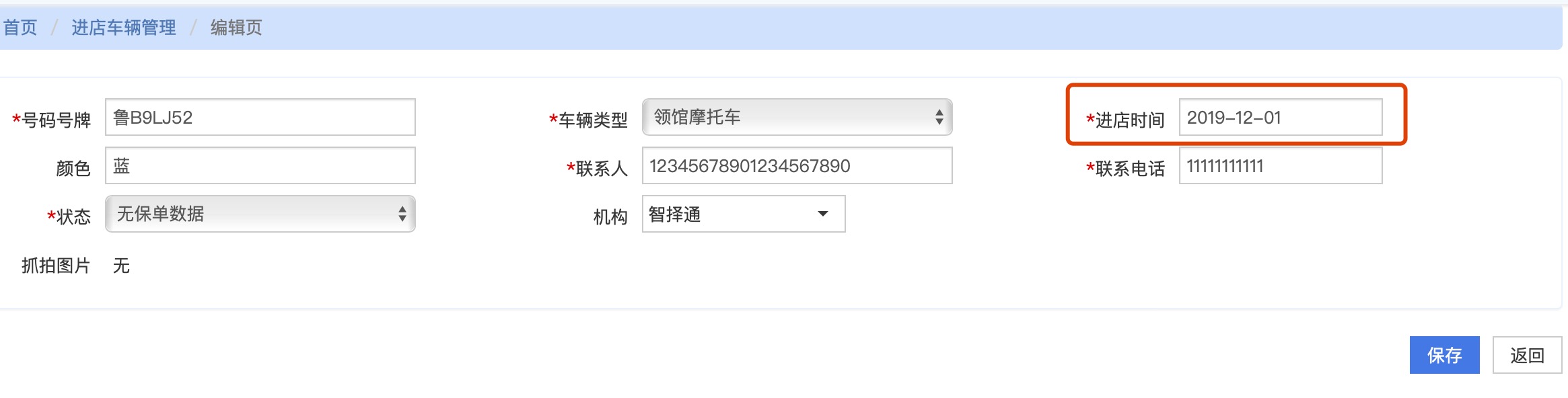 【电销管理】进店车辆,编辑时,进店日期只能选择小于或者等于当前日期