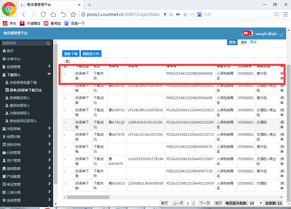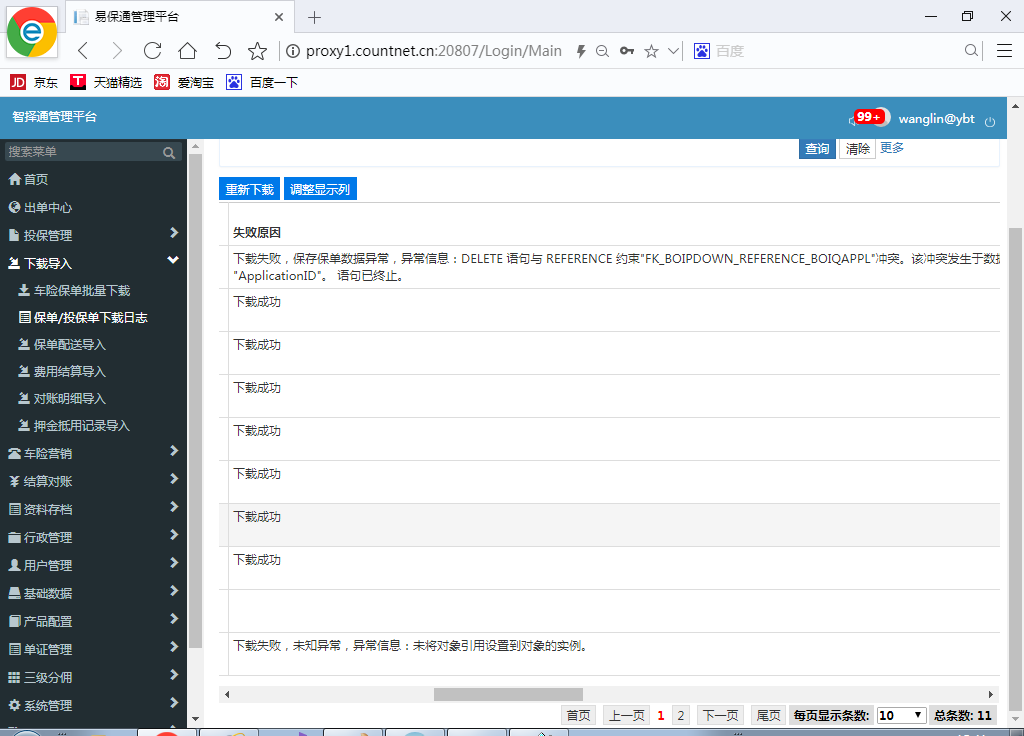 该问题由于两个相同的下载日志绑定同一张投保单导致,现已修改