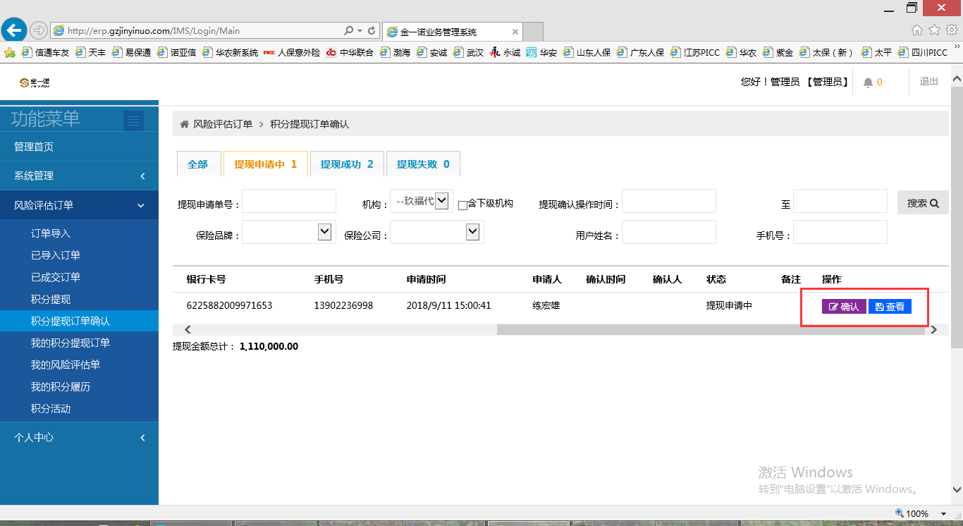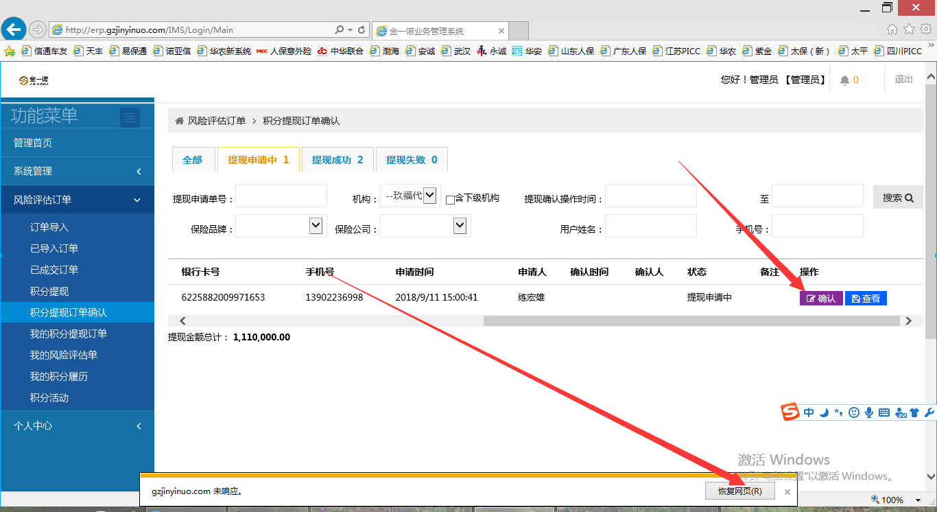 【金一诺】积分申请订单点击确认时,网页一直无法加载并且会导致网页停止