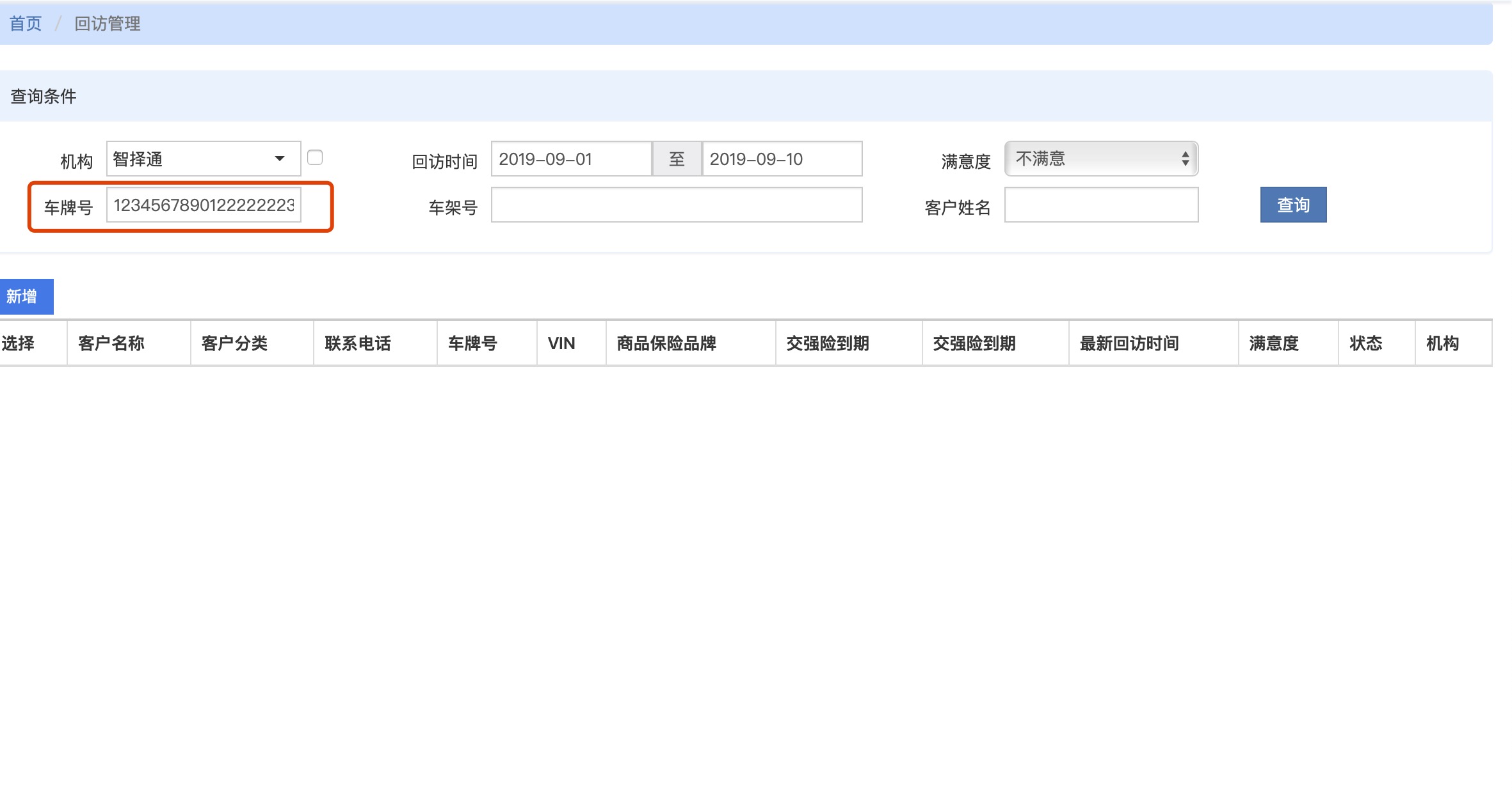 【电销管理】回访管理,查询时车牌号应该限制最大输入10位