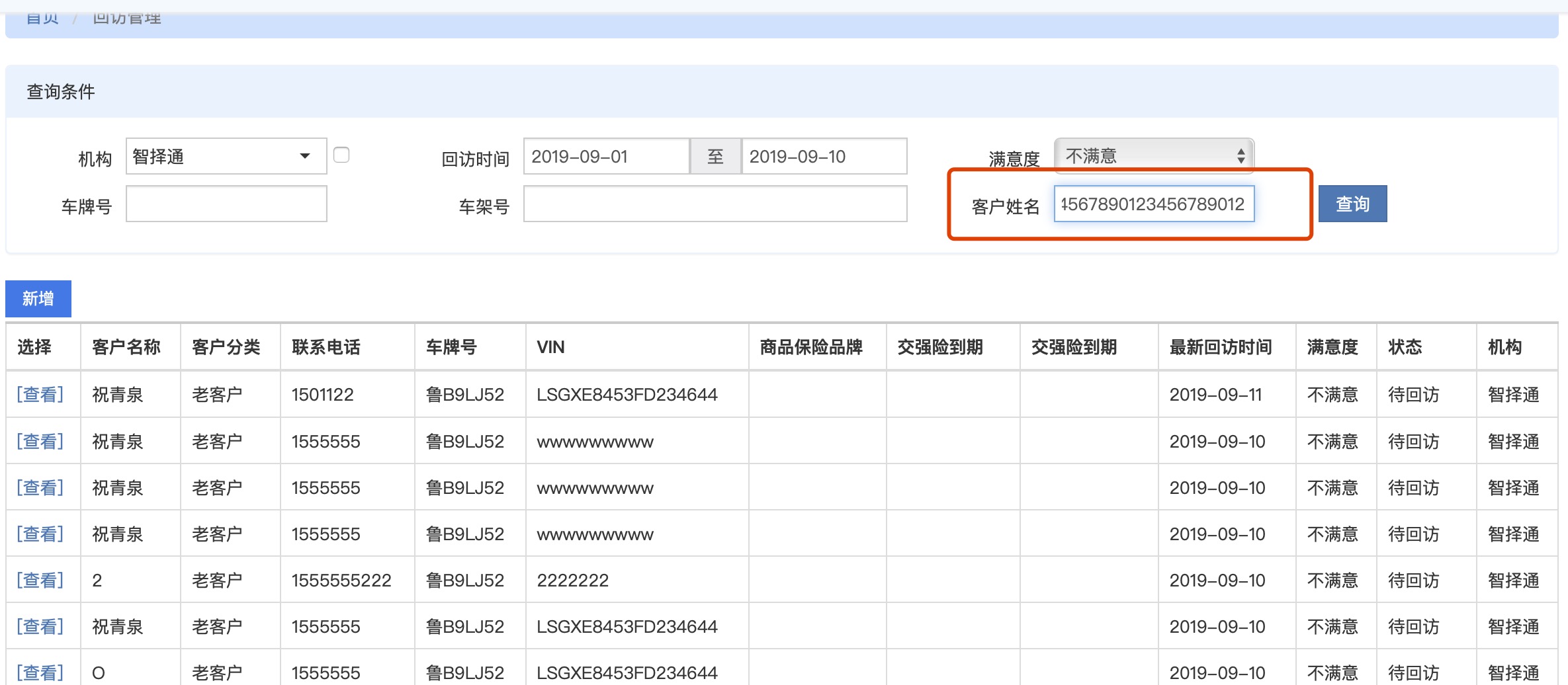 【电销管理】回访管理,查询时车主姓名应该限制最大输入50位