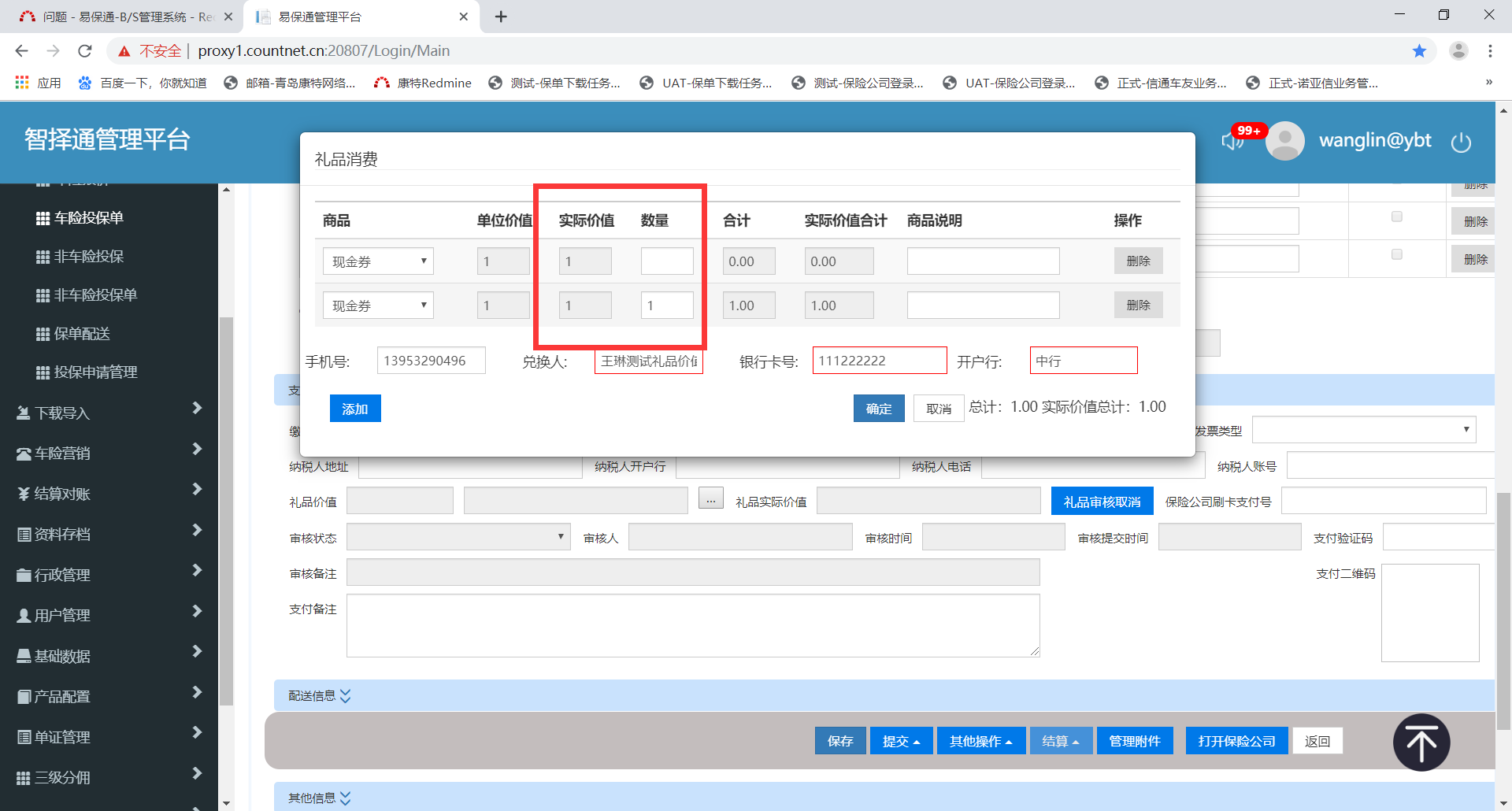 【出单中心2.0-人保电销】管理系统中进入投保单编辑页面,添加礼品,现金券礼品应该填写金额,不是填写数量