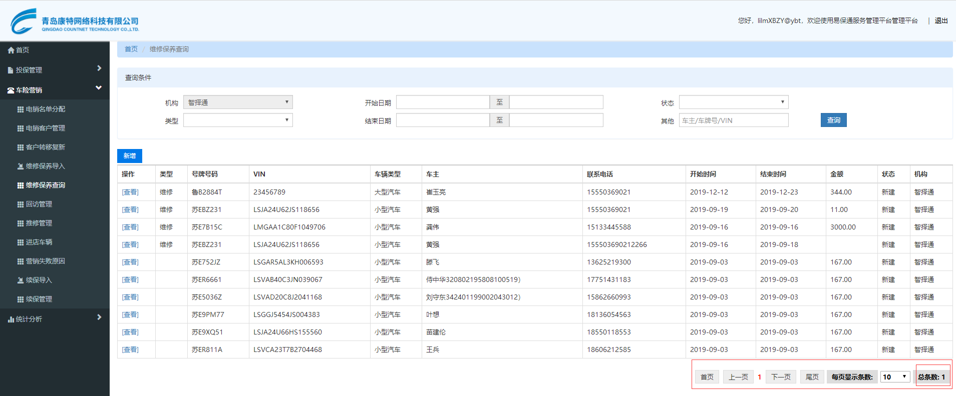 【电销管理】维修保养查询,总条数显示不正确,导致分页错误