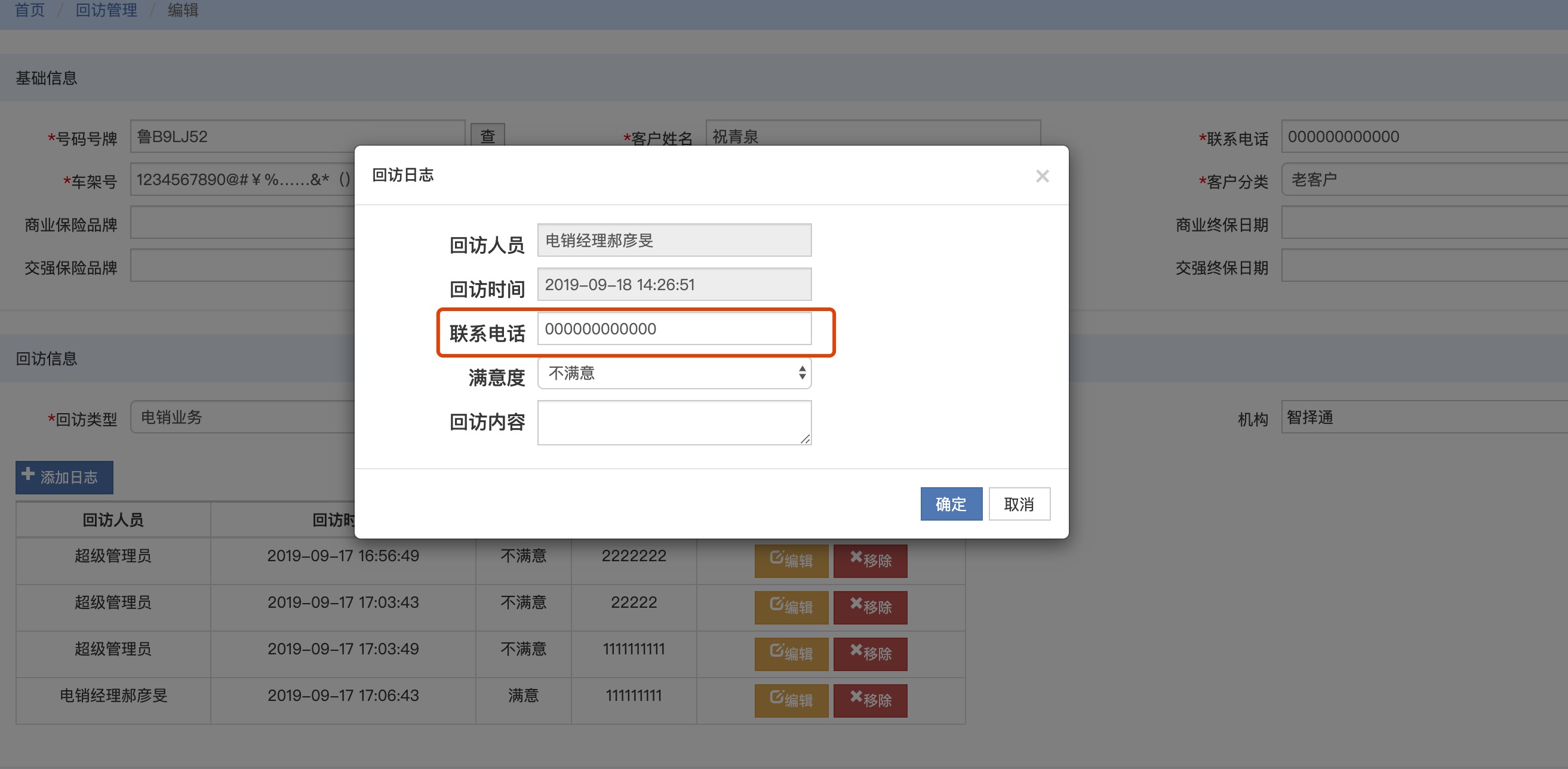 【电销管理】回访管理,回访日志页面,联系电话未做基本格式正则,问题同4090