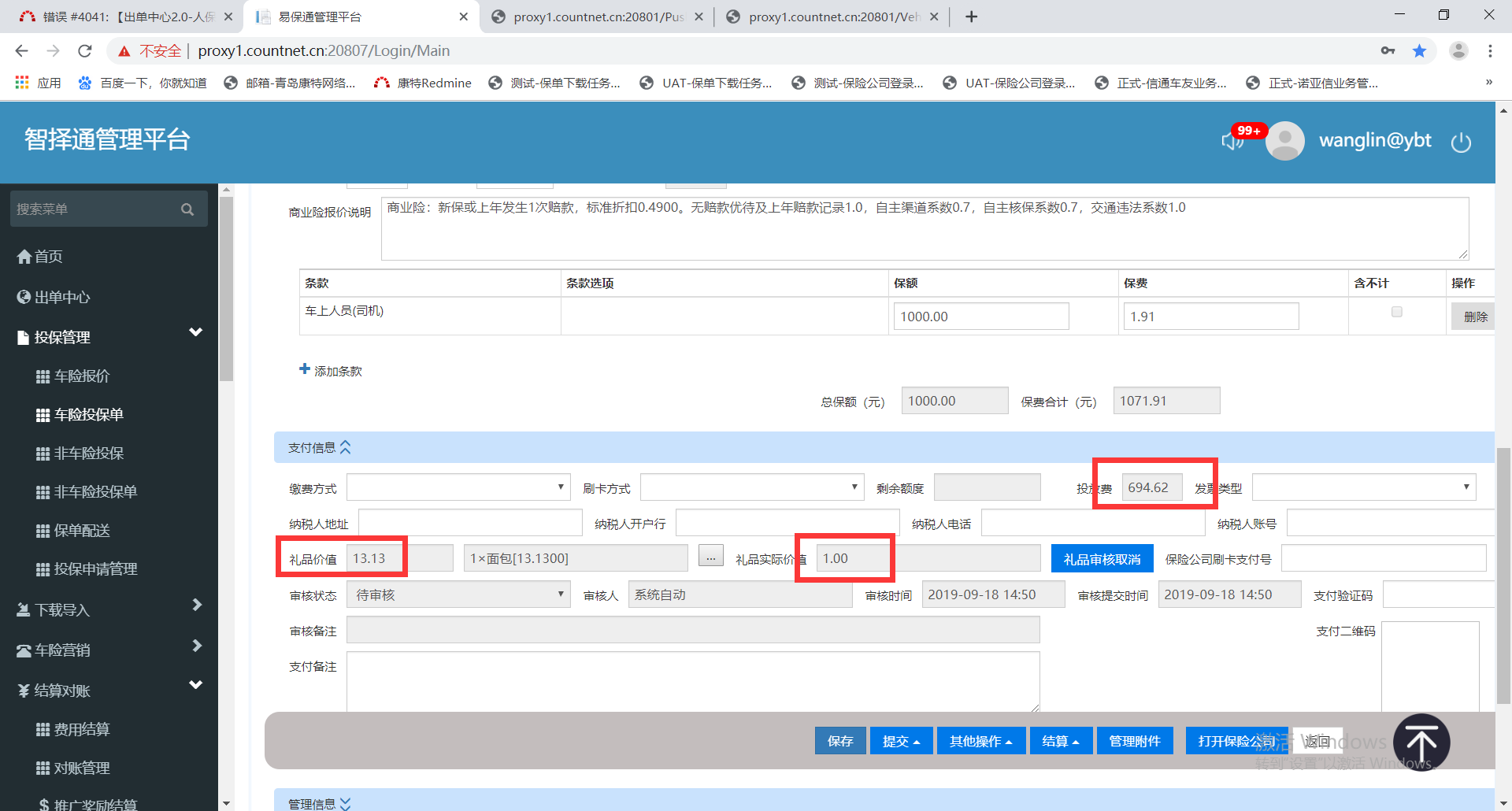 【出单中心2.0-人保电销】便捷下载保单并选择礼品,下载成功后,投保单的礼品审核错误