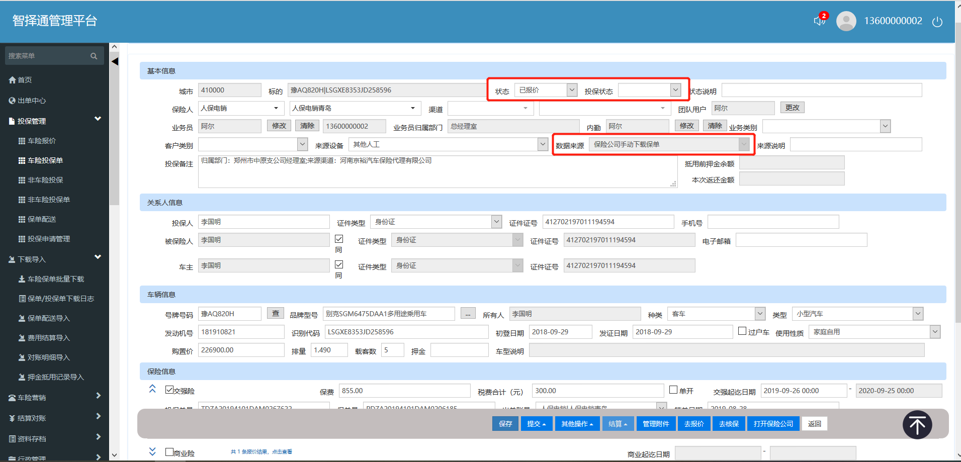 投保单ID:efbc4700afb242258b904f687bf563d0 测试车辆:豫AQ820H
