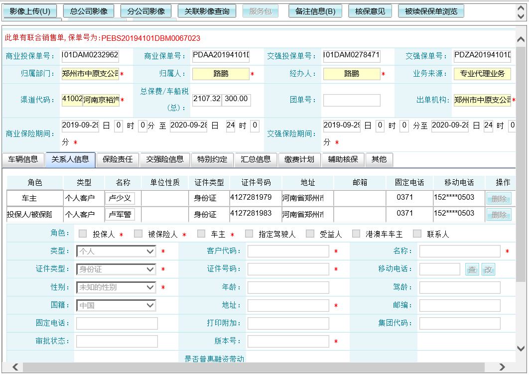 【出单中心2.0-人保电销】便捷下载,下载保单后保险人关系人界面电话和地址都没有代入。