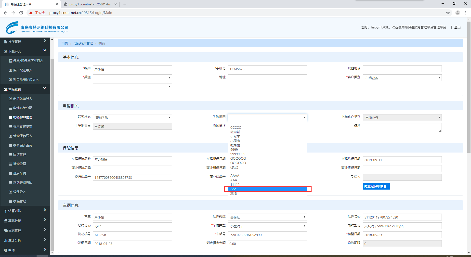 【电销管理】营销失败原因,设置为停用的数据,在电销客户编辑中失败原因可选