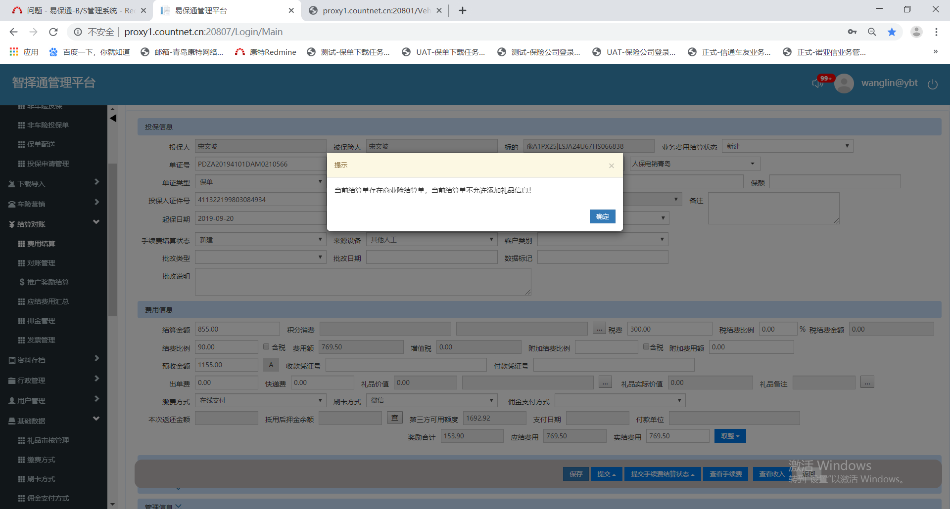 该问题已修改,如果有关联车险结算单会提示,不能添加。