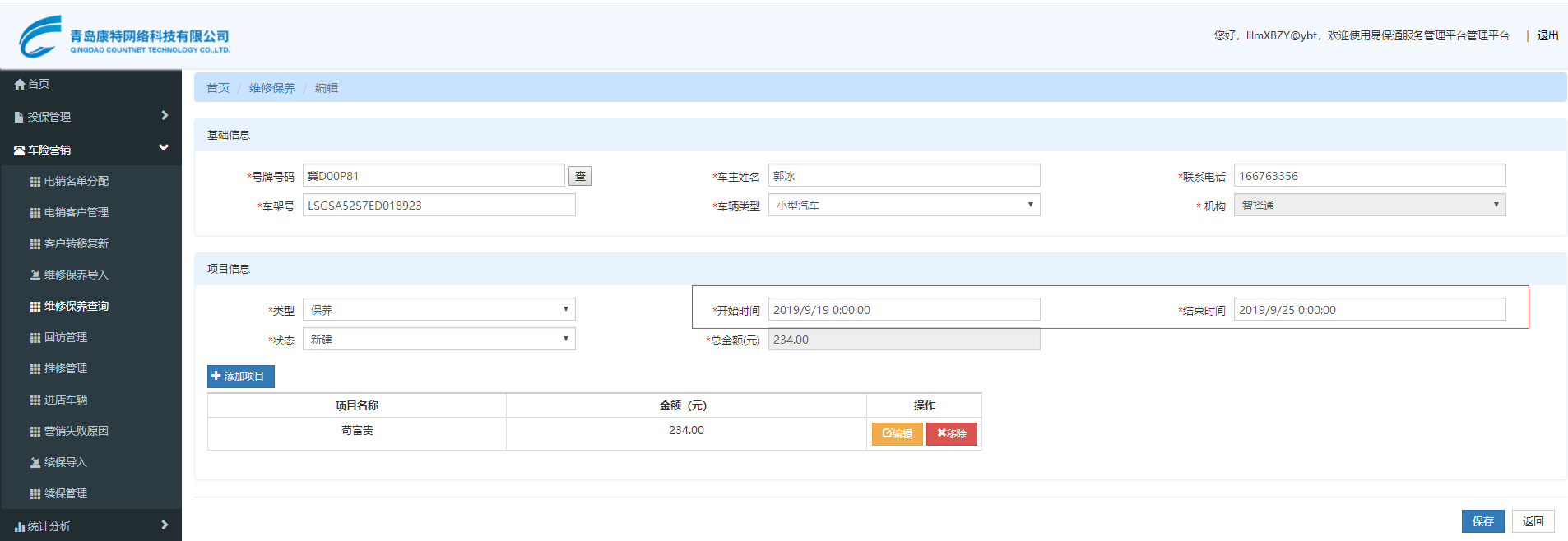 维修保养新增数据,选择开始、结束时间未显示时分秒,保存后打开此数据开始时间和结束时间显示时分秒