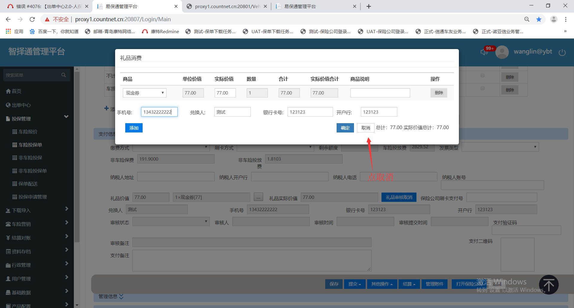 【出单中心2.0-人保电销】管理系统中进入投保单编辑页面,点击添加礼品弹窗,修改信息后点取消,再次打开不应该显示修改后的信息,应该保留原有信息不变