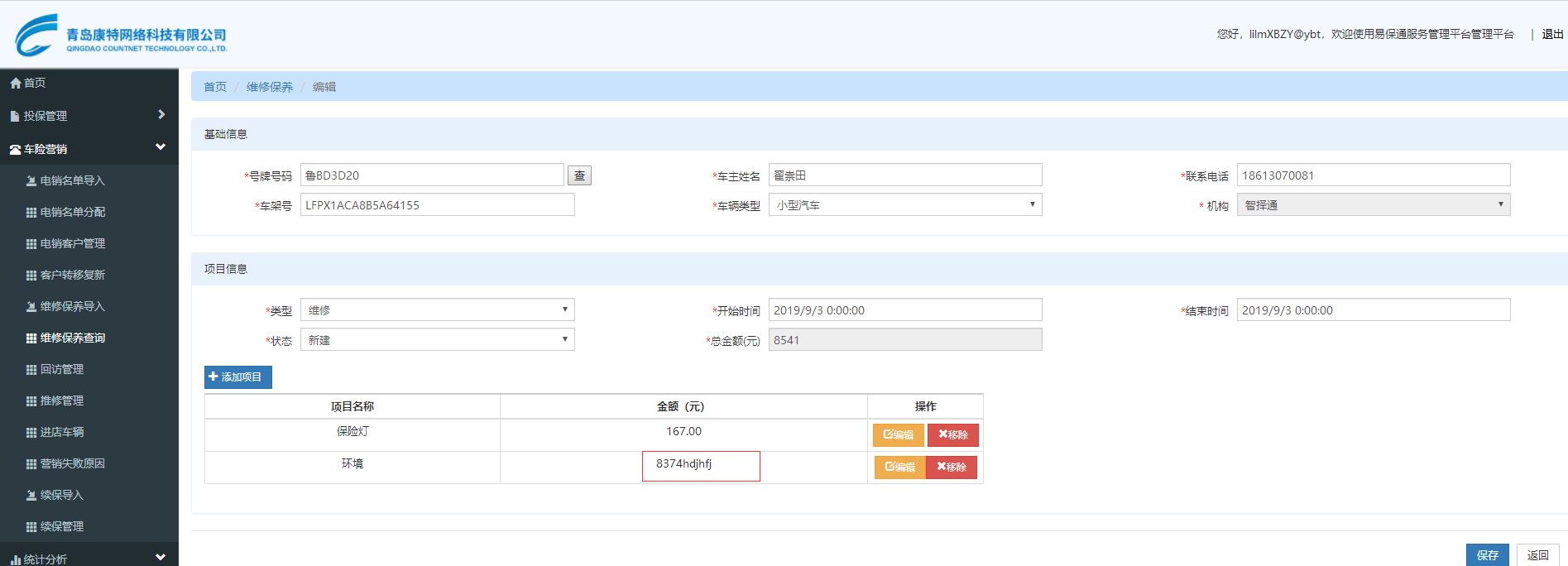 【电销管理】维修保养查询,编辑界面,添加项目-金额字符限制错误