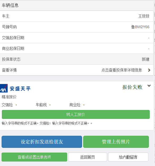 描述:上述车在安达保系统中选择安盛天平报价时,系统提示“输入的字符串格式不正确”。