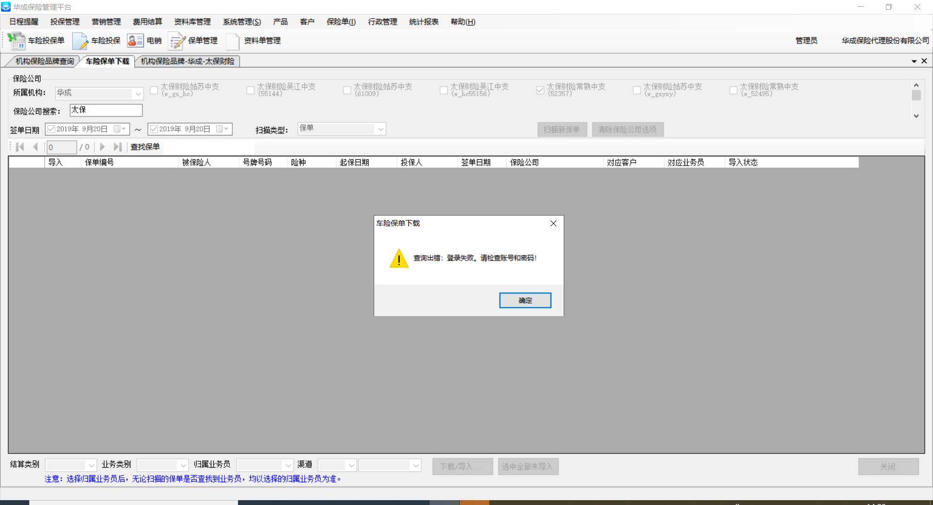 描述:太保P09系统提示“账号或密码错误”,使用系统内配置的账号密码登录太保系统时能够正常使用。