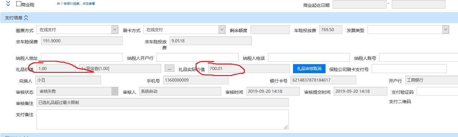 礼品价值显示应和礼品实际价值显示一致