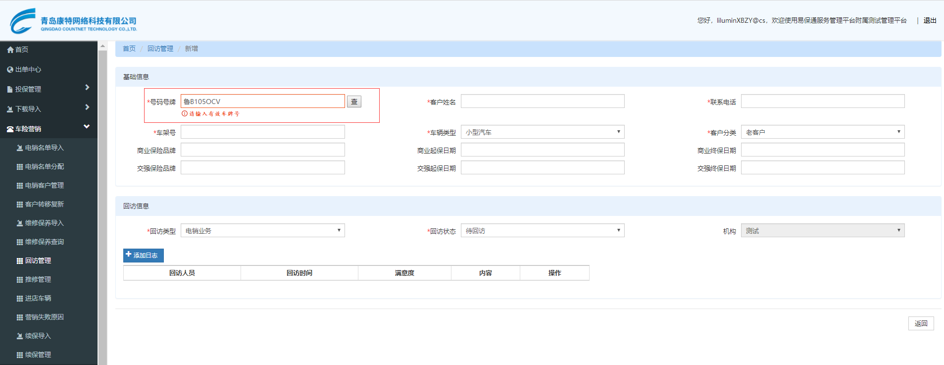 客户管理界面号牌号码验证与回访管理界面号牌号码验证不一致。备注:回访管理界面提示语为车牌号与号牌号码不一致