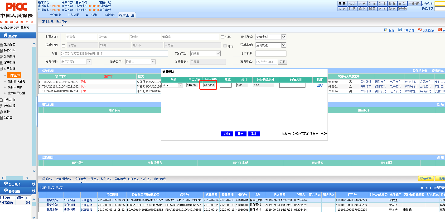 【出单中心2.0-人保电销】电销系统便捷下载选择礼品时,礼品的实际价值显示四位小数,应该为两位小数。