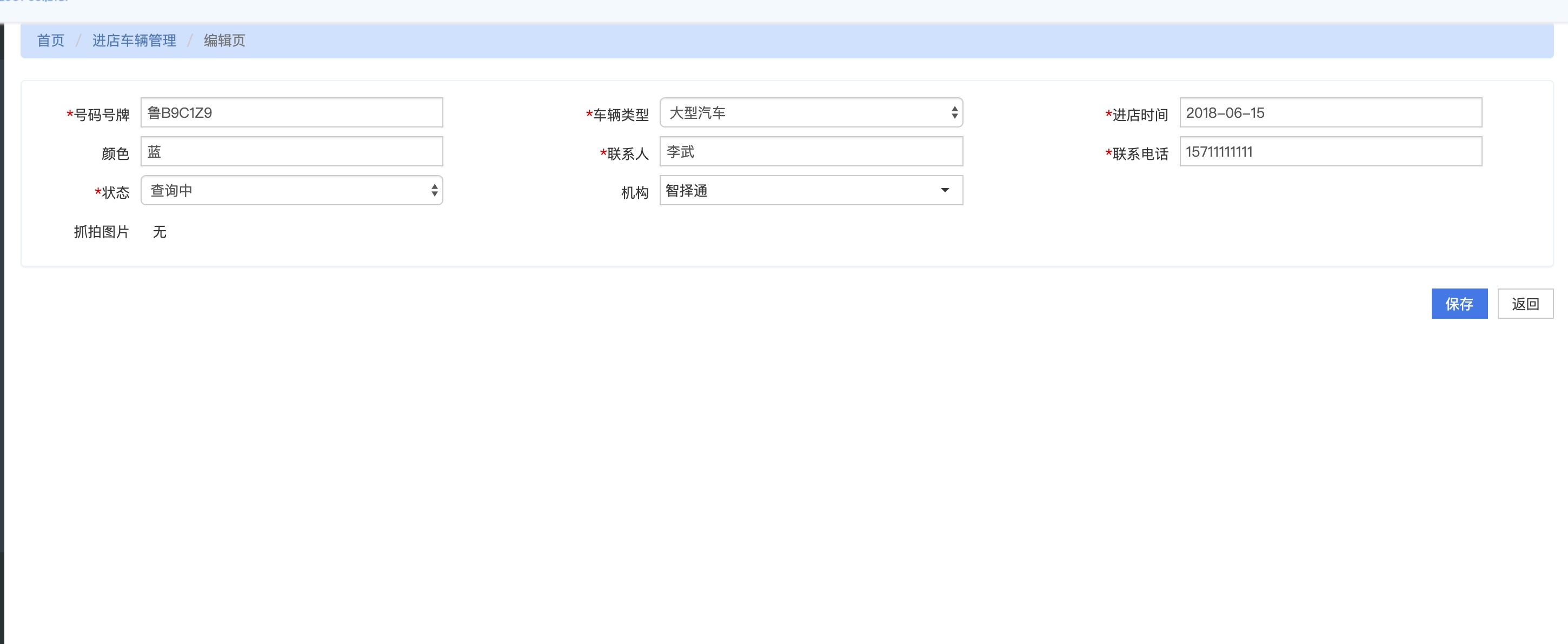 【电销管理】进店车辆,查看带有抓拍图片的车辆,编辑页面点击保存,成功后抓拍图片消失