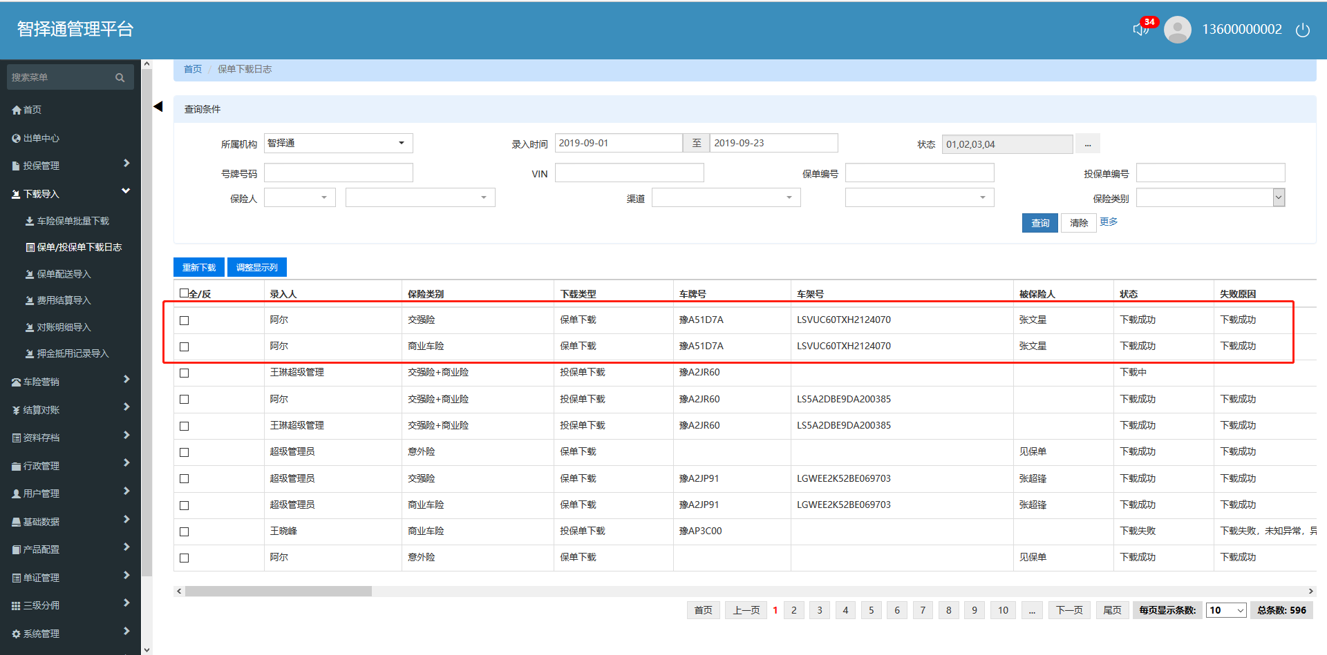 【出单中心2.0-人保电销】便捷下载保单,没有关联下载非车险保单。