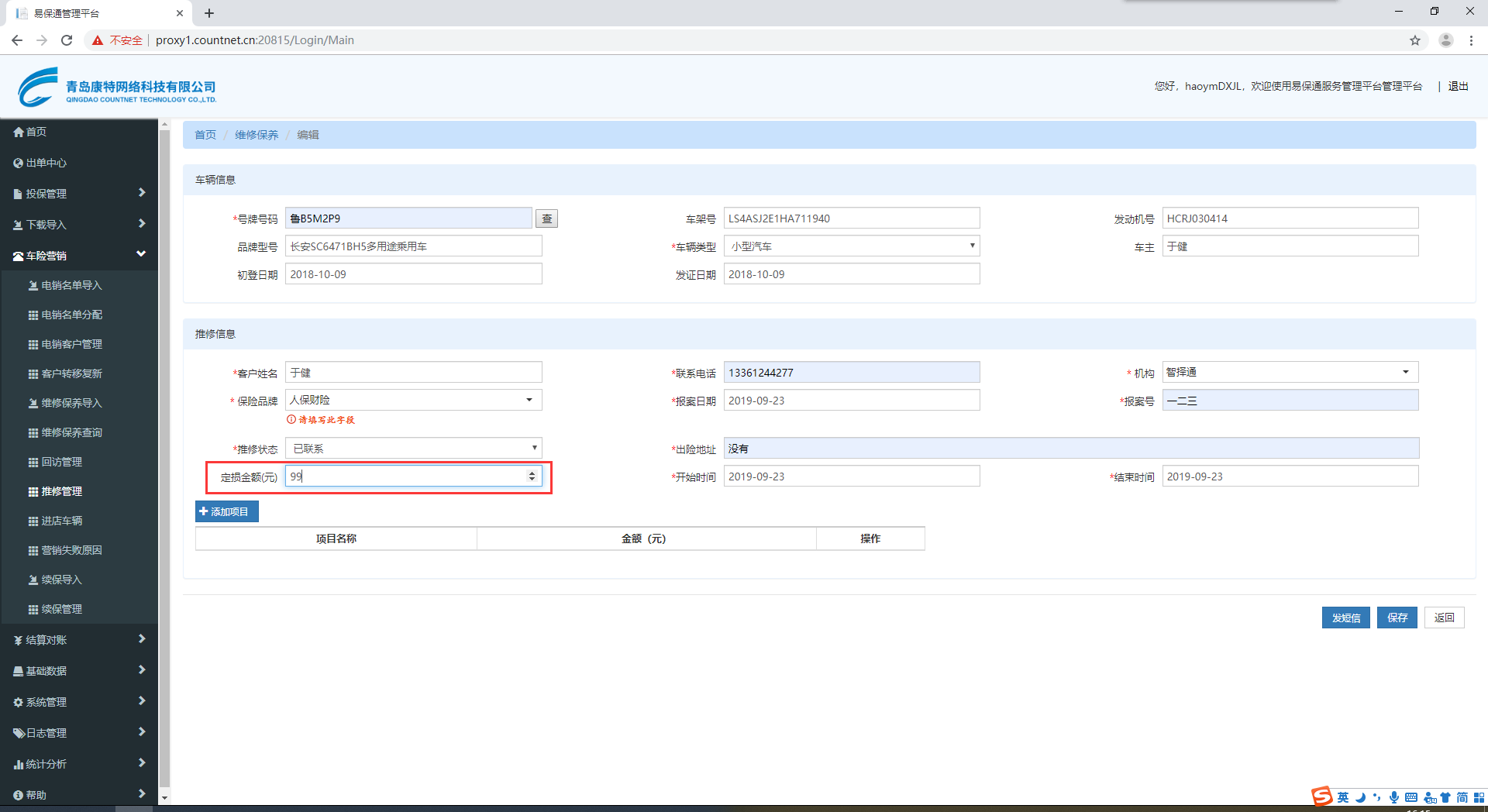 【电销管理】推修管理,推修编辑页面,定损金额不能在数字后直接输入小数点