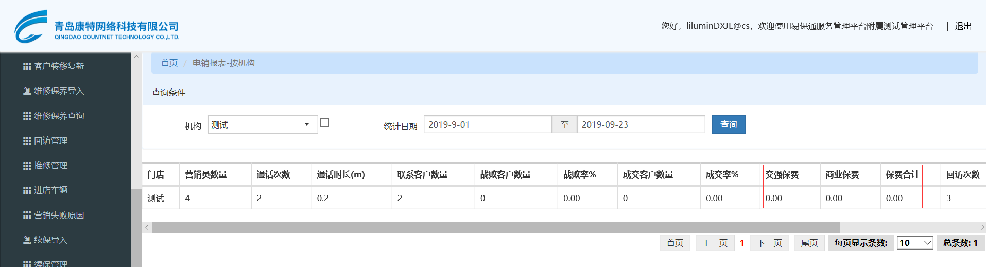 此问题是由于统计是sql连接条件中商业险和交强险的条件混乱导致保费统计错误,现在已经修改,请重新测试。