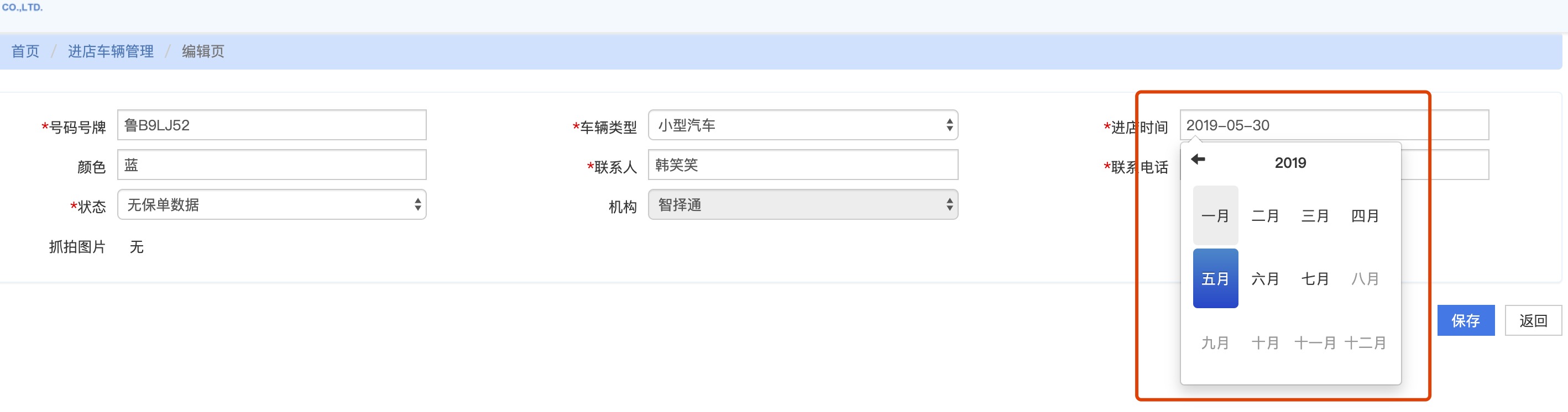 【电销管理】进店车辆,编辑时,进店日期月份选择与当前月份不匹配,无法选择