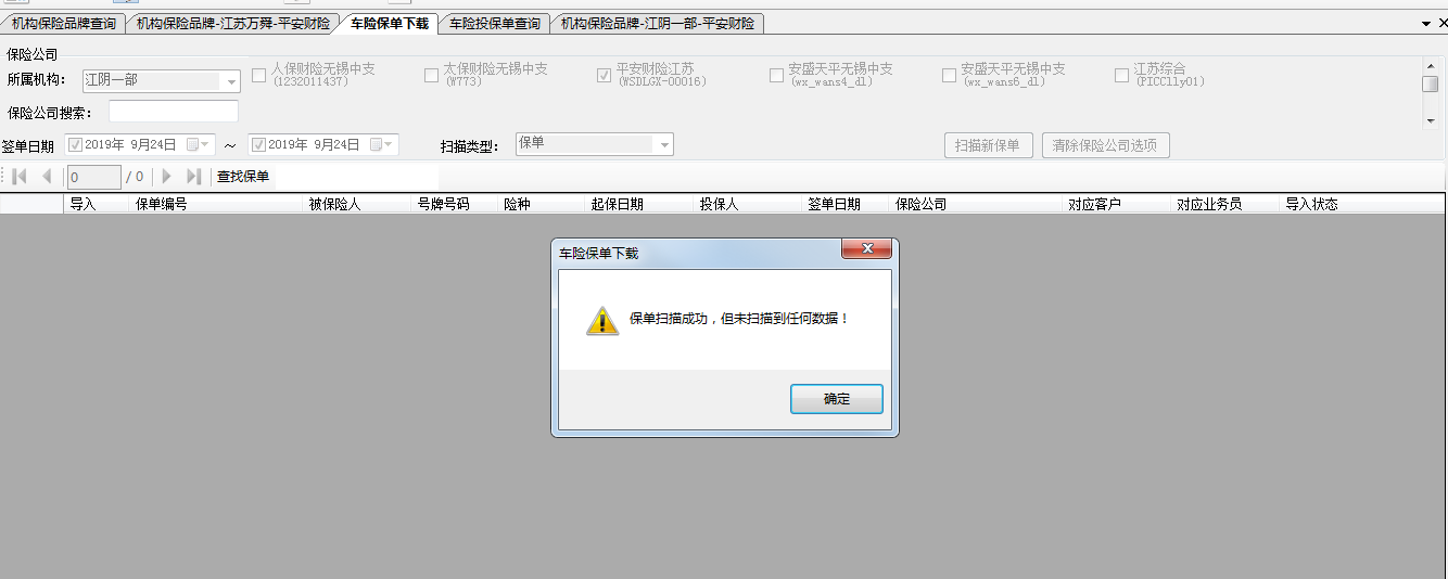 投保单提交到已报价状态后提示已在保险公司系统中查到保单是否下载,点击确定后提示VPN连接失败