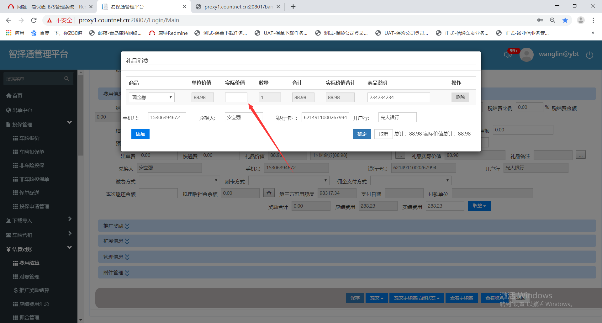 【出单中心2.0-人保电销】便捷下载保单,礼品审核通过自动生成结算单,查看商业险结算单的礼品显示正常,不作任何修改点保存,现金券的实际价值显示空了,见附图