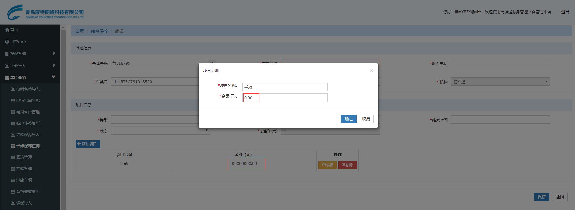 【电销管理】维修保养查询,添加项目金额,显示不一致