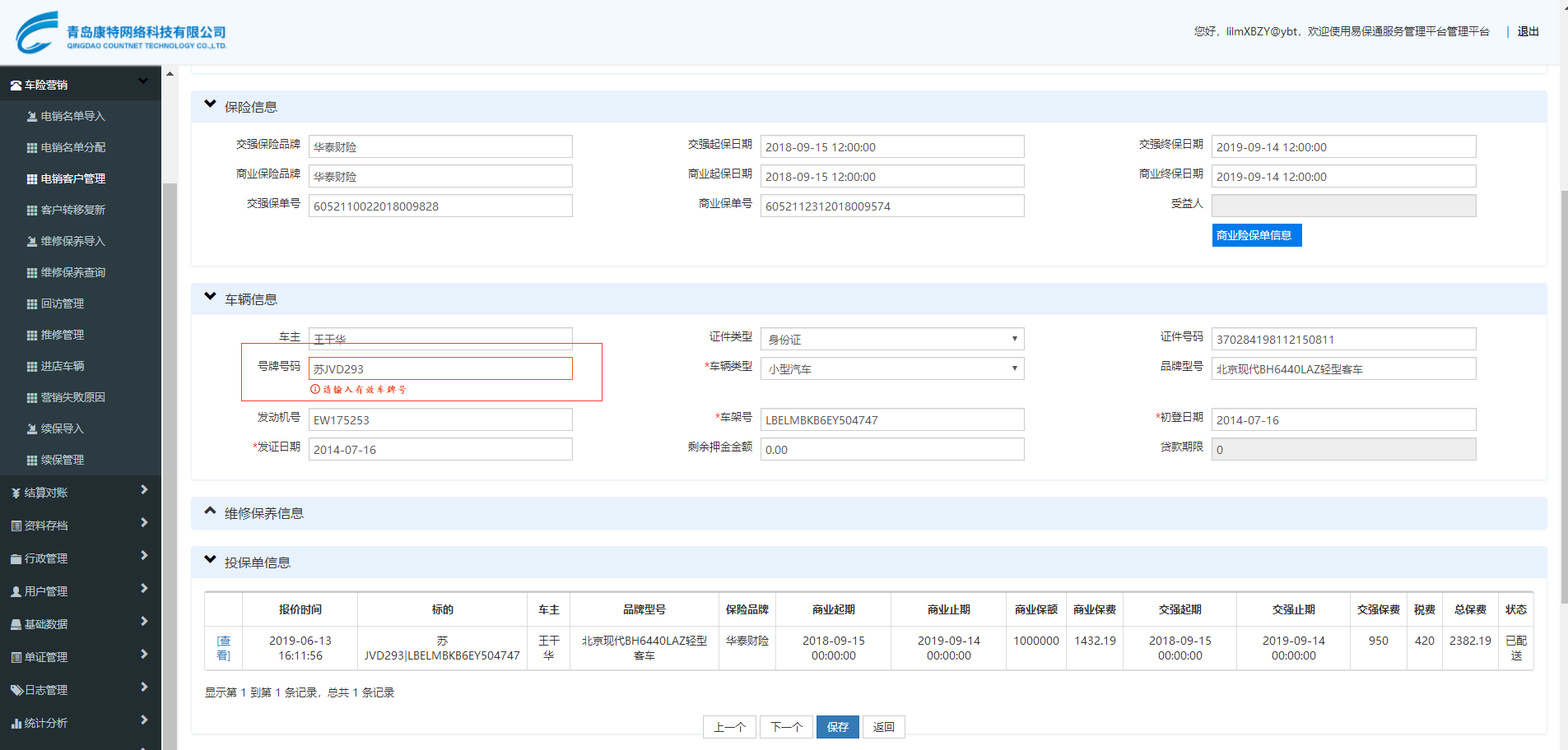 电销客户管理编辑界面,号牌号码输入小写时离开光标自动转大写,仍有错误提示,可以保存成功