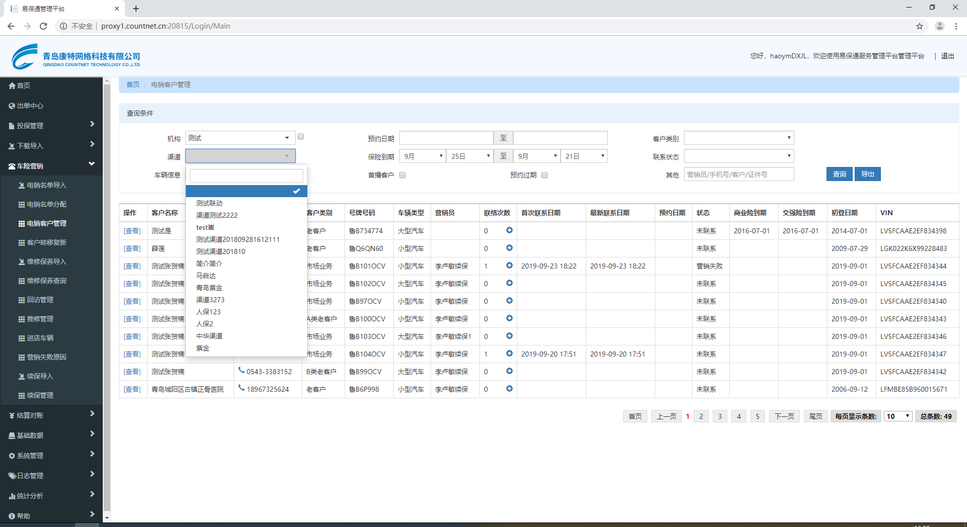 【电销管理】电销客户管理,选择智择通子机构和渠道查询数据后,查询条件中渠道被清空,点击下拉显示的是智择通的渠道