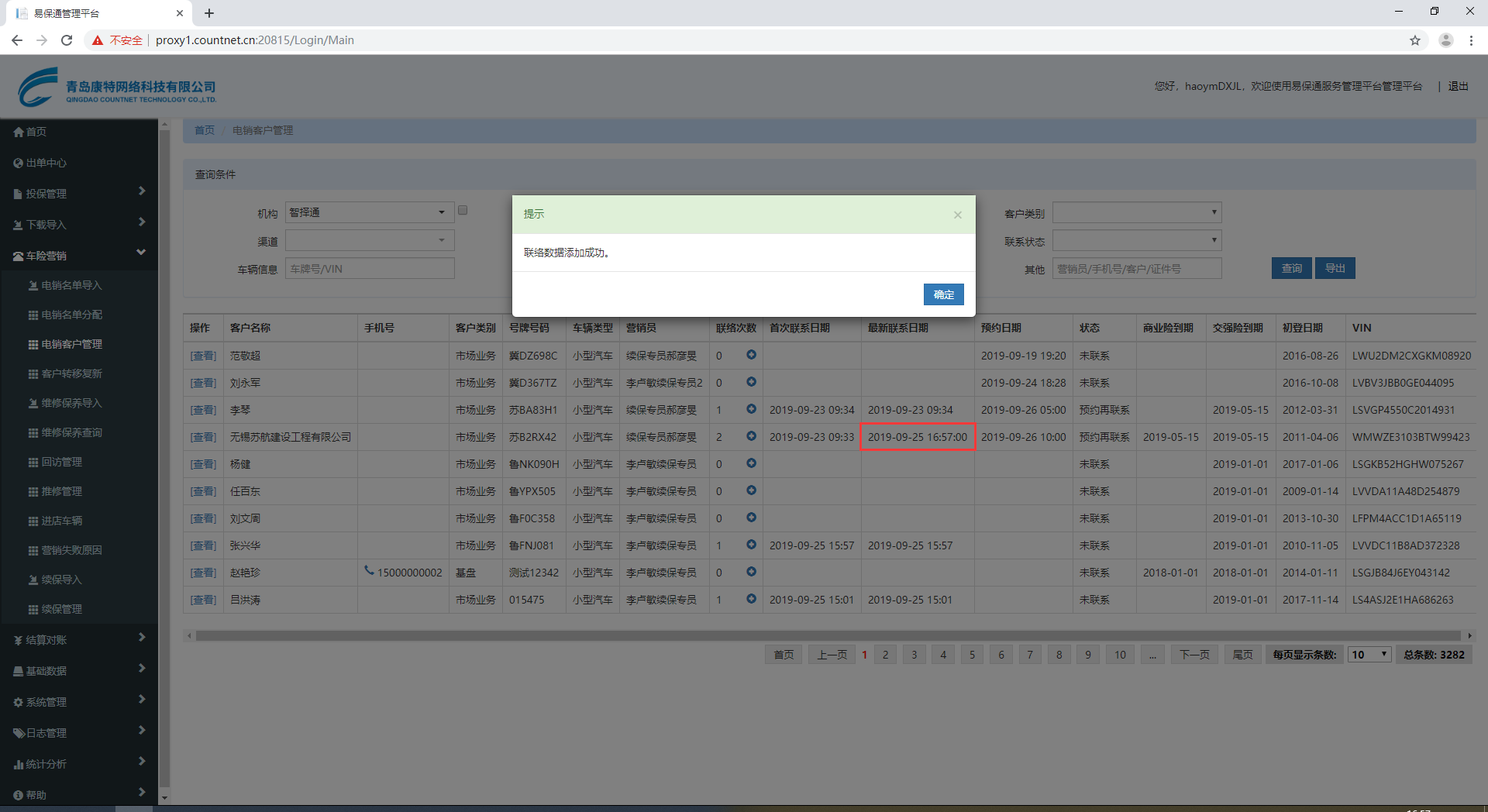 【电销管理】电销客户管理,添加电销日志,最新联系日期显示比其他多两位