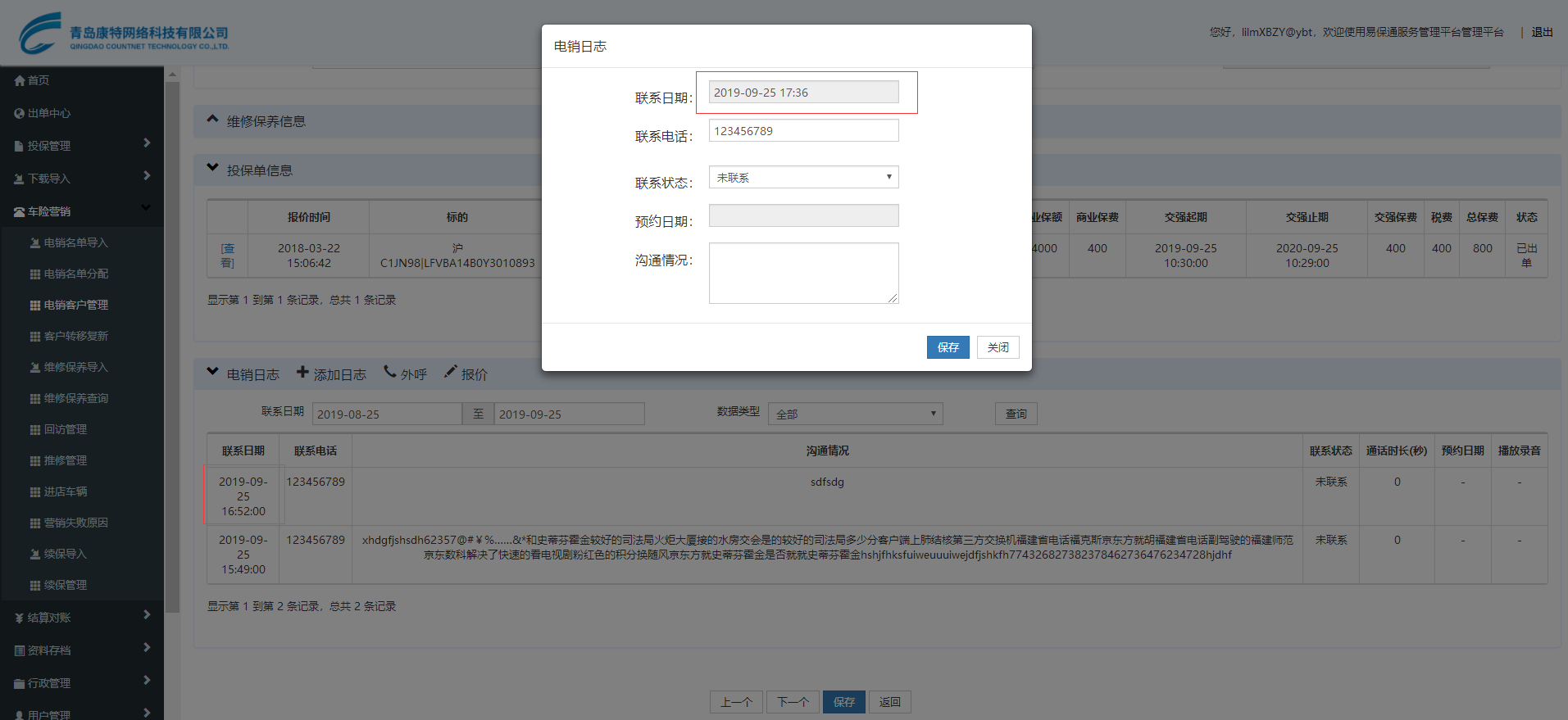 【电销管理】电销客户管理界面编辑页面,添加电销日志时联系日期与电销日志列表联系日期不一致