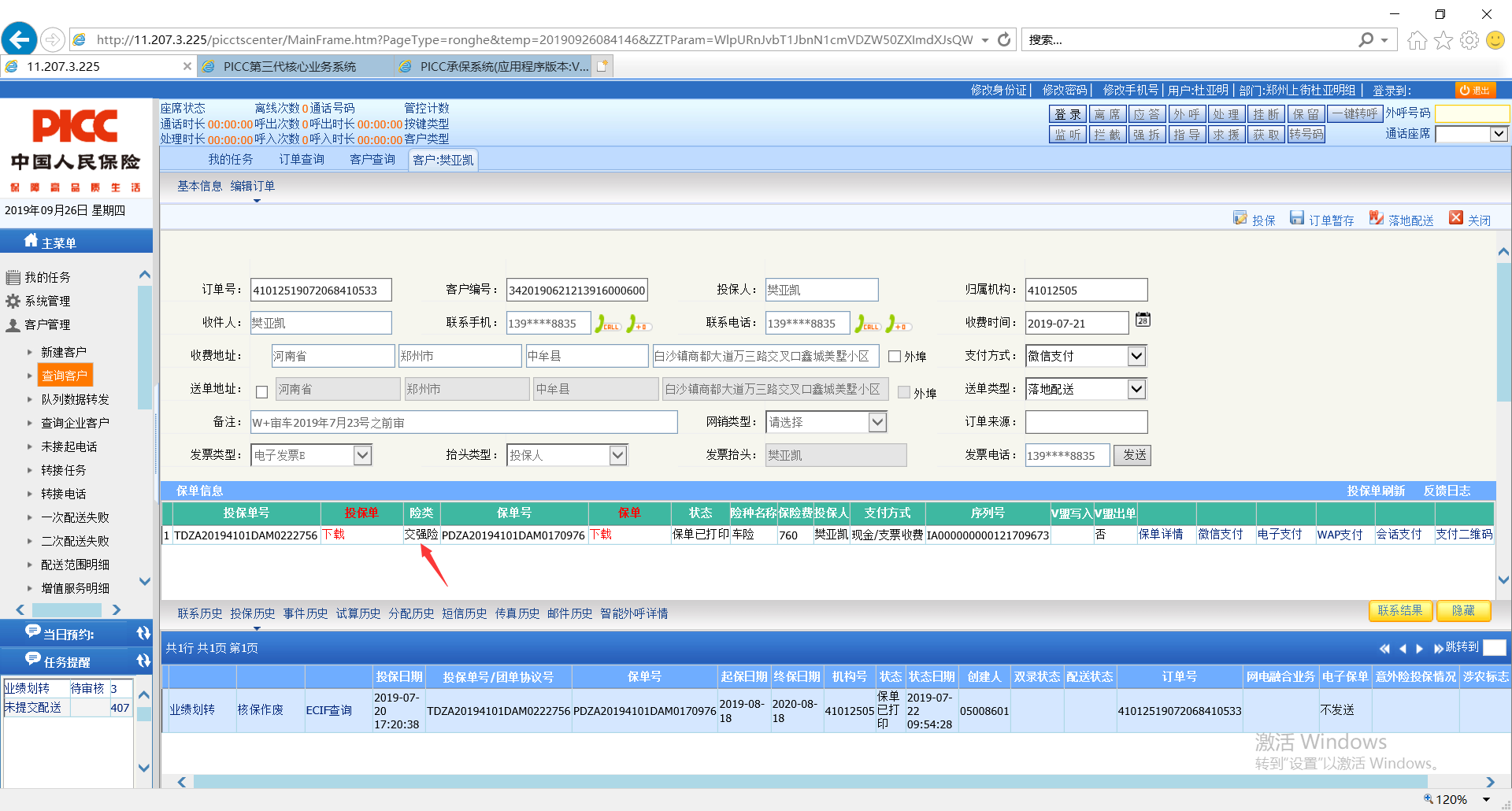 【出单中心2.0-人保电销】便捷下载保单,在电销系统内只显示一个交强险保单,下载时却下载了交强和商业的保单,见图