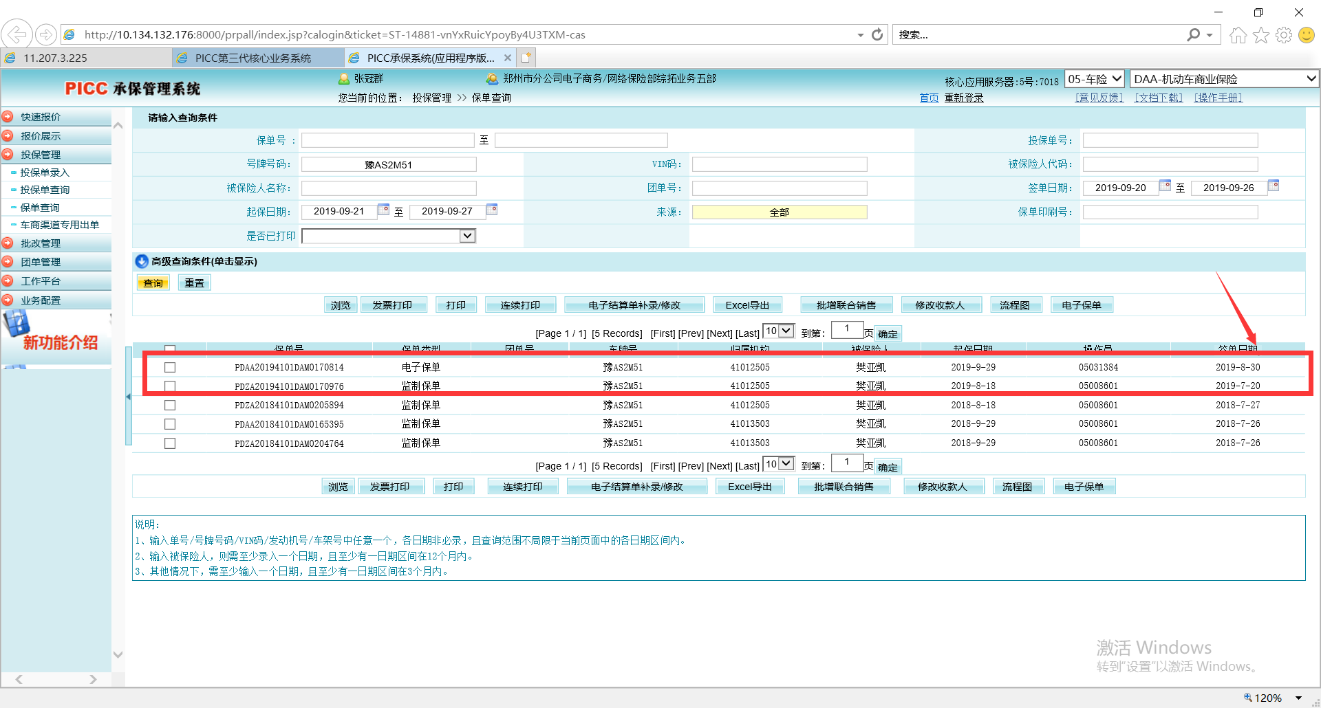 经在人保系统查询,查到商业险的保单,但是交强和商业是两个签单日期,应该是两个单子,不应该关联下载