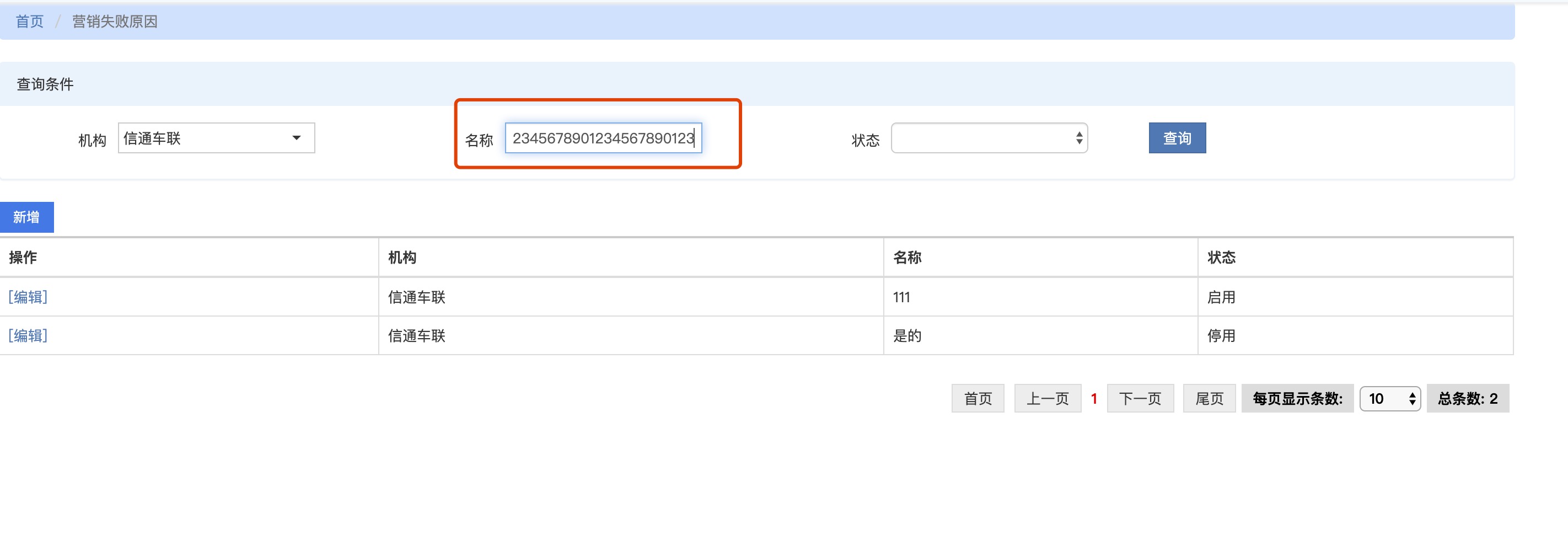 【电销管理】营销失败原因,查询页面,名称未做最大长度限制,50位