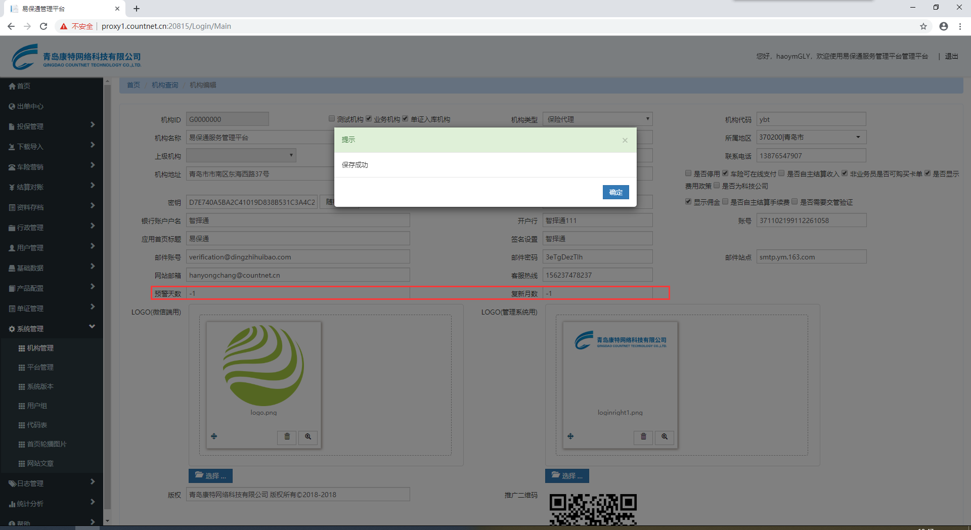 【电销管理】机构管理,复新月数和预警天数填写负数可以保存