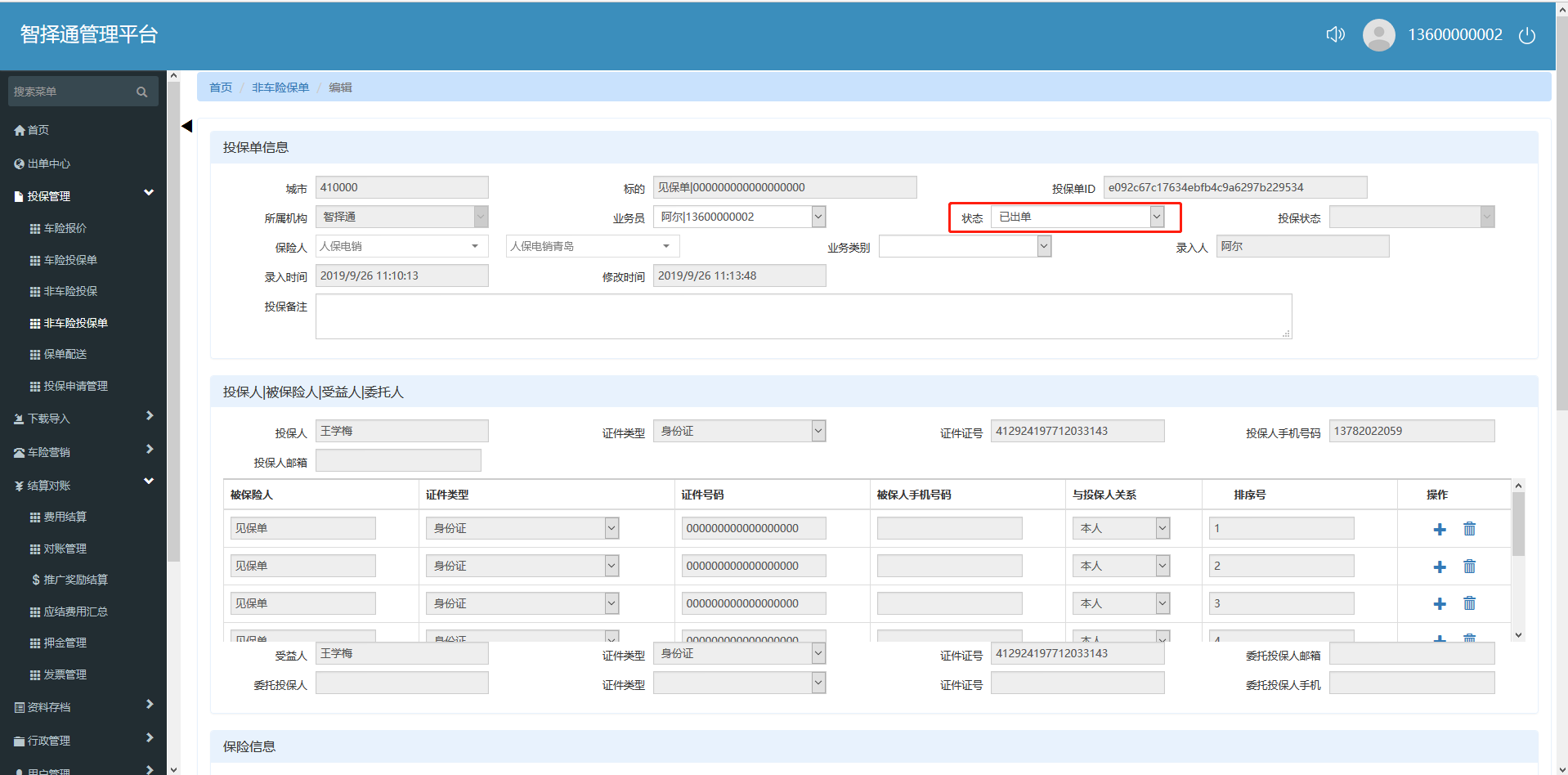 【出单中心2.0-人保电销】便捷下载投保单,再下载保单,礼品审核失败的情况下,非车险投保单自动提交到了已出单。