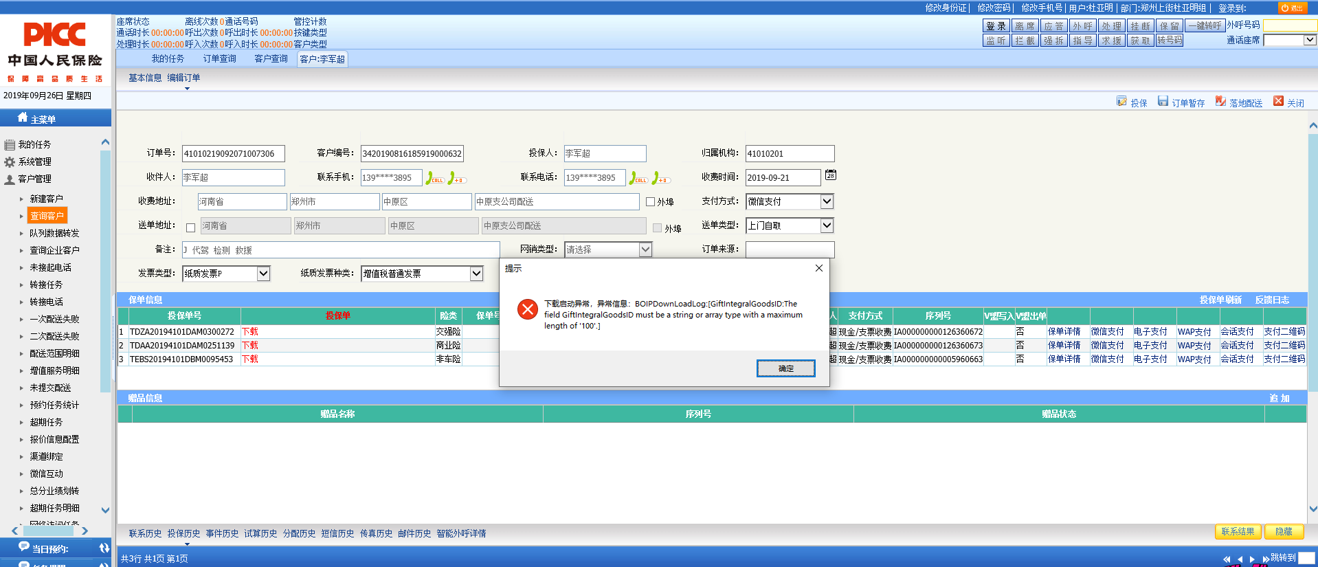 【出单中心2.0-人保电销】便捷下载投保单,选择礼品时权益说明输入长度未做限制,输入太长出单中心报异常。