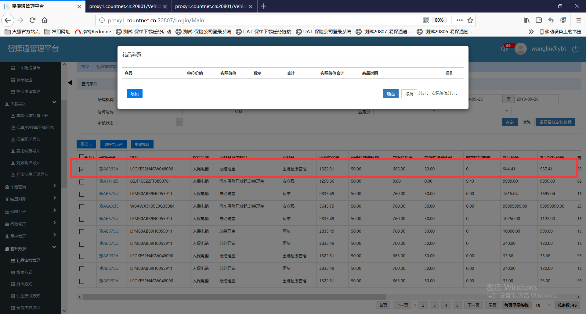 2. 查看“礼品审核管理”中,该车的礼品仍为待审核的记录,查看这条待审核的记录,礼品显示空,如图