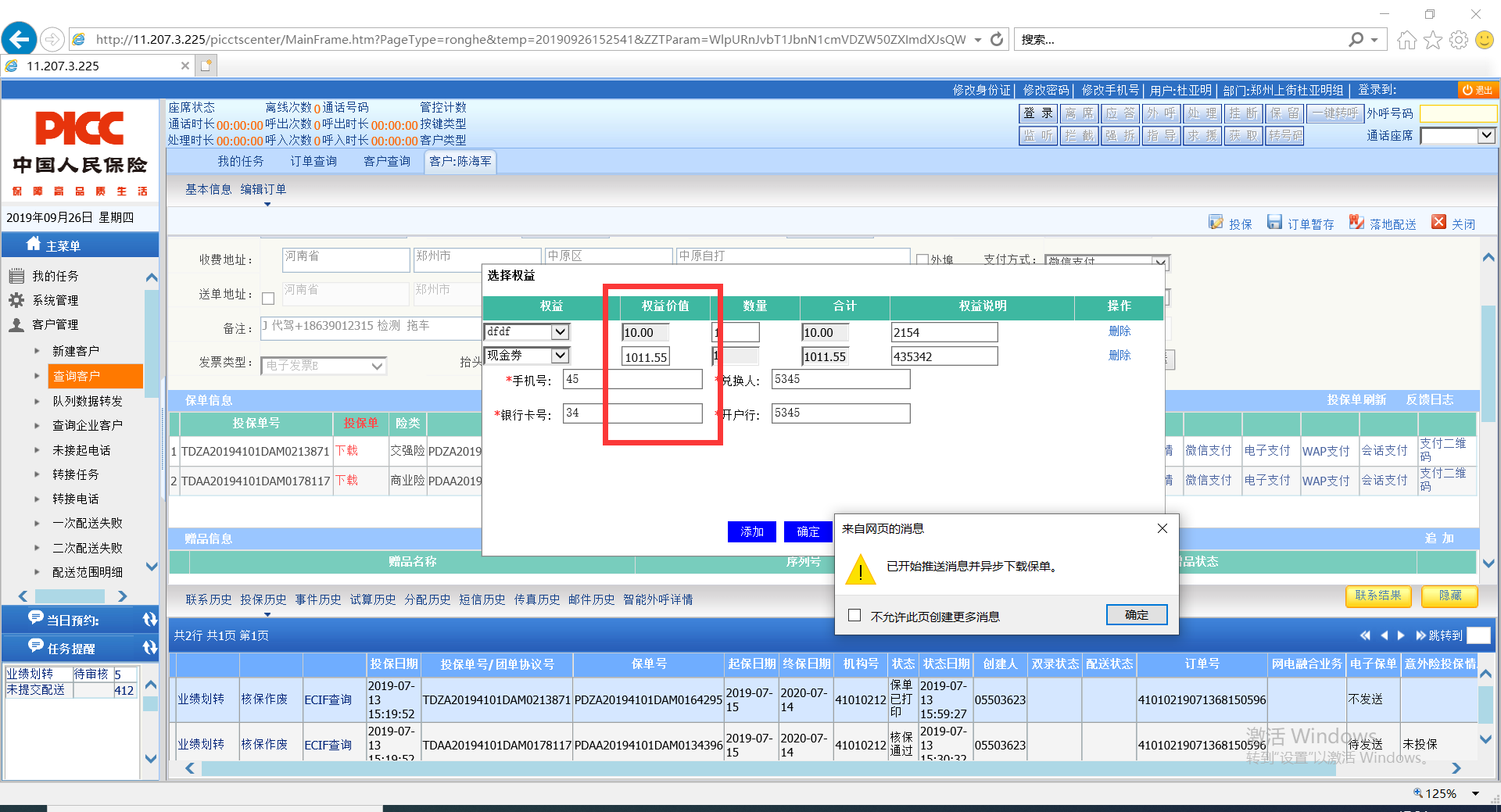 易保通-核心服务 - 优化 #3946: 【出单中心2.0】人保电销系统优化