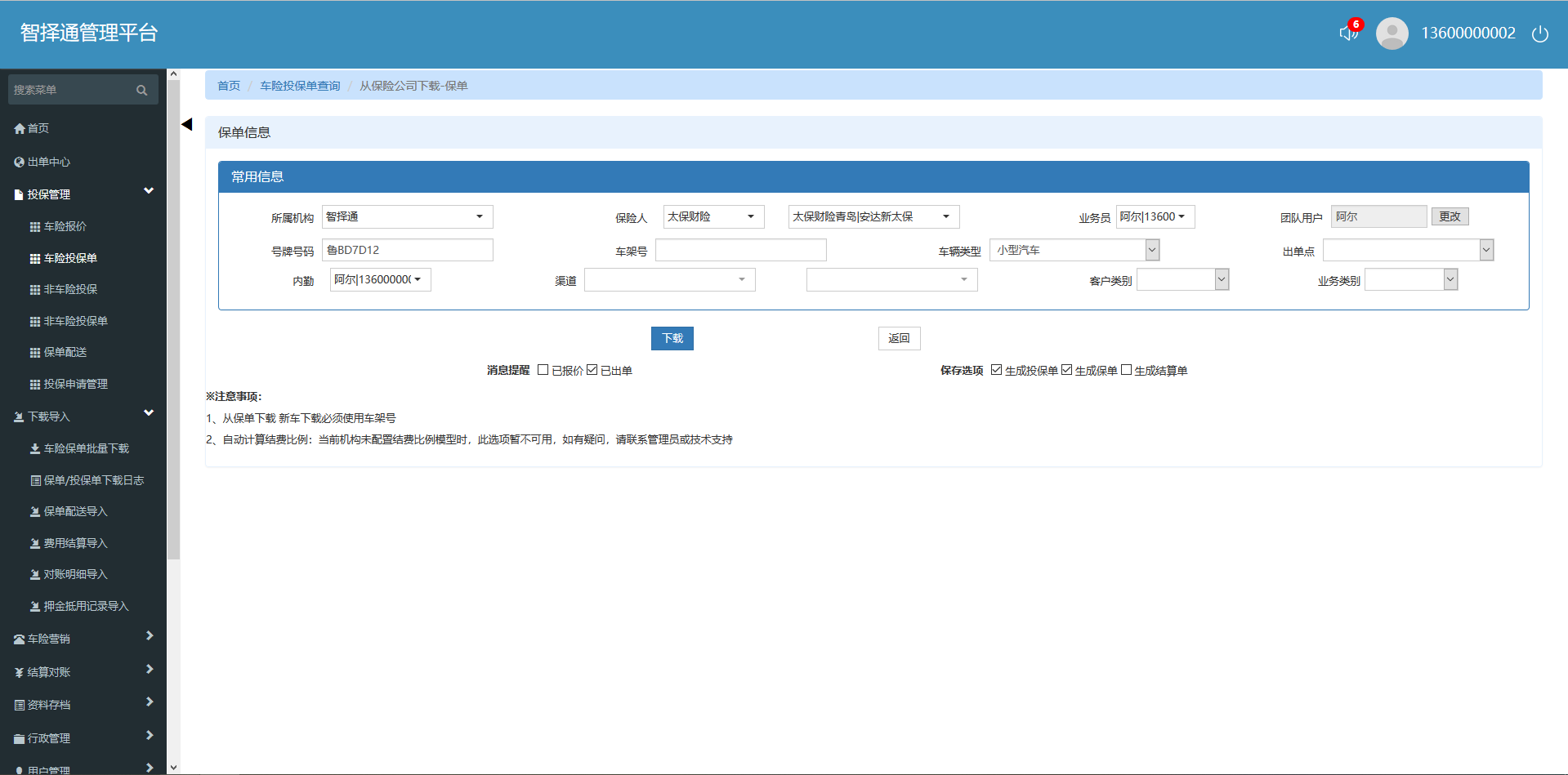 【出单中心2.0-人保电销】从保险公司下载保单,不选择生成结算单,保单下载成功后仍然会生成结算单。