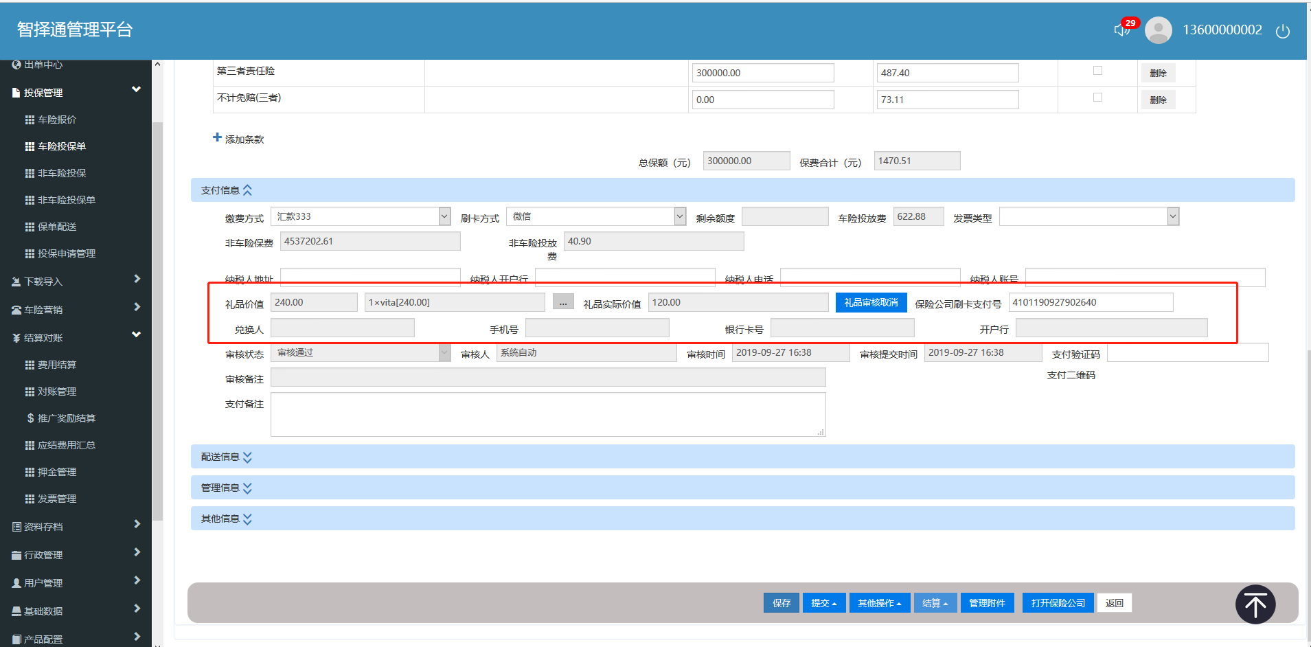 【出单中心2.0-人保电销】便捷下载下载投保单,下载时不选礼品,投保单下载成功后编辑投保单,更改礼品从审核失败的现金券至审核通过的非现金券礼品,投保单再提交至任意状态,礼品显示出会显示兑换人那一行。